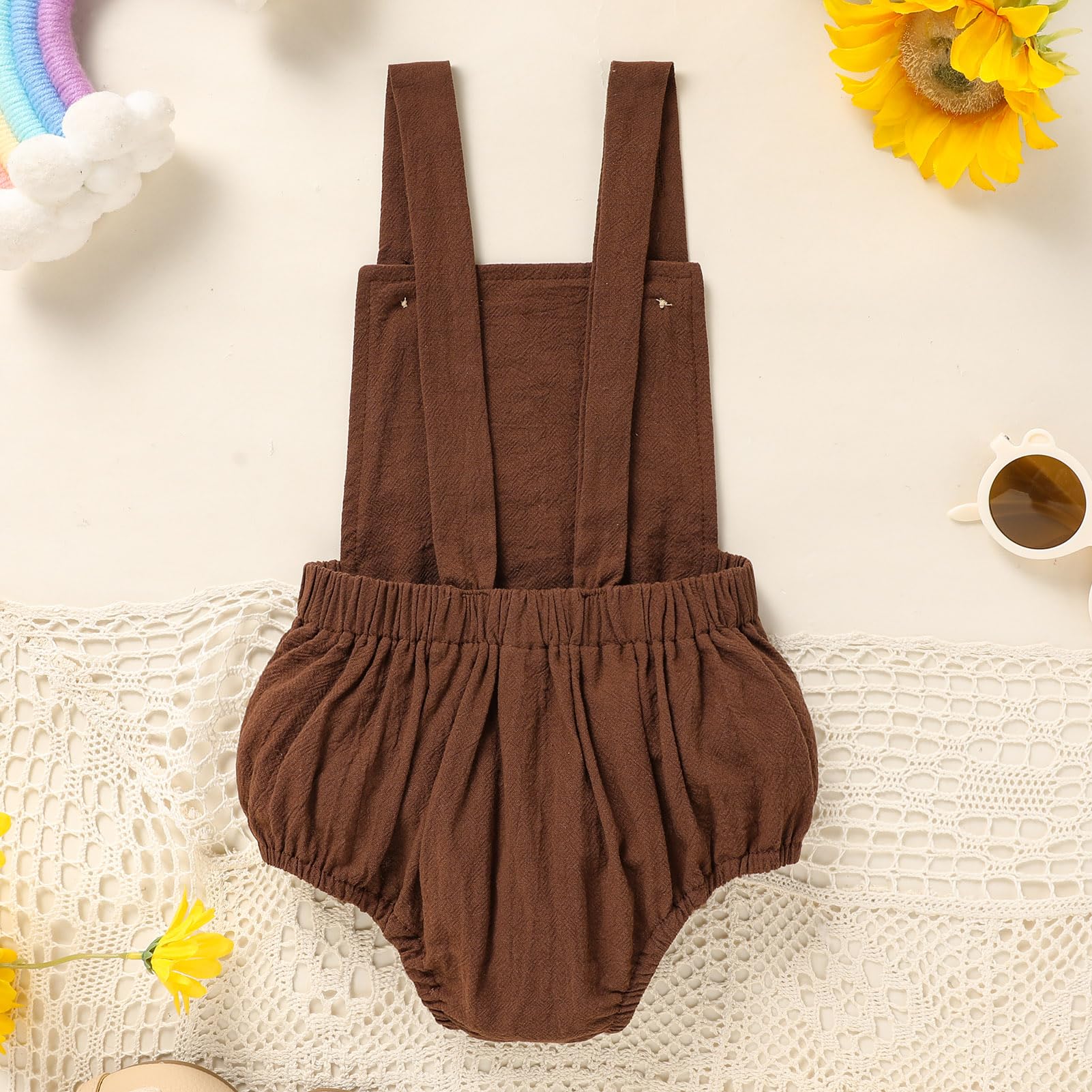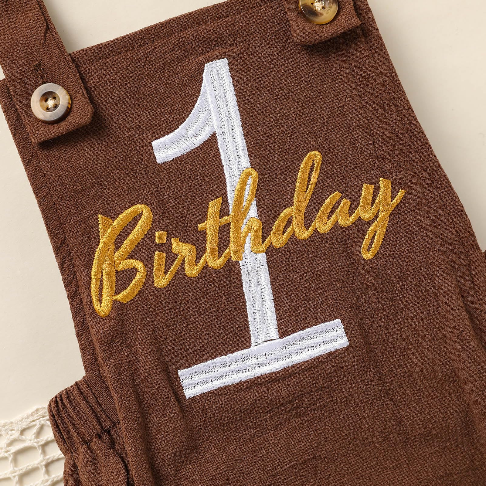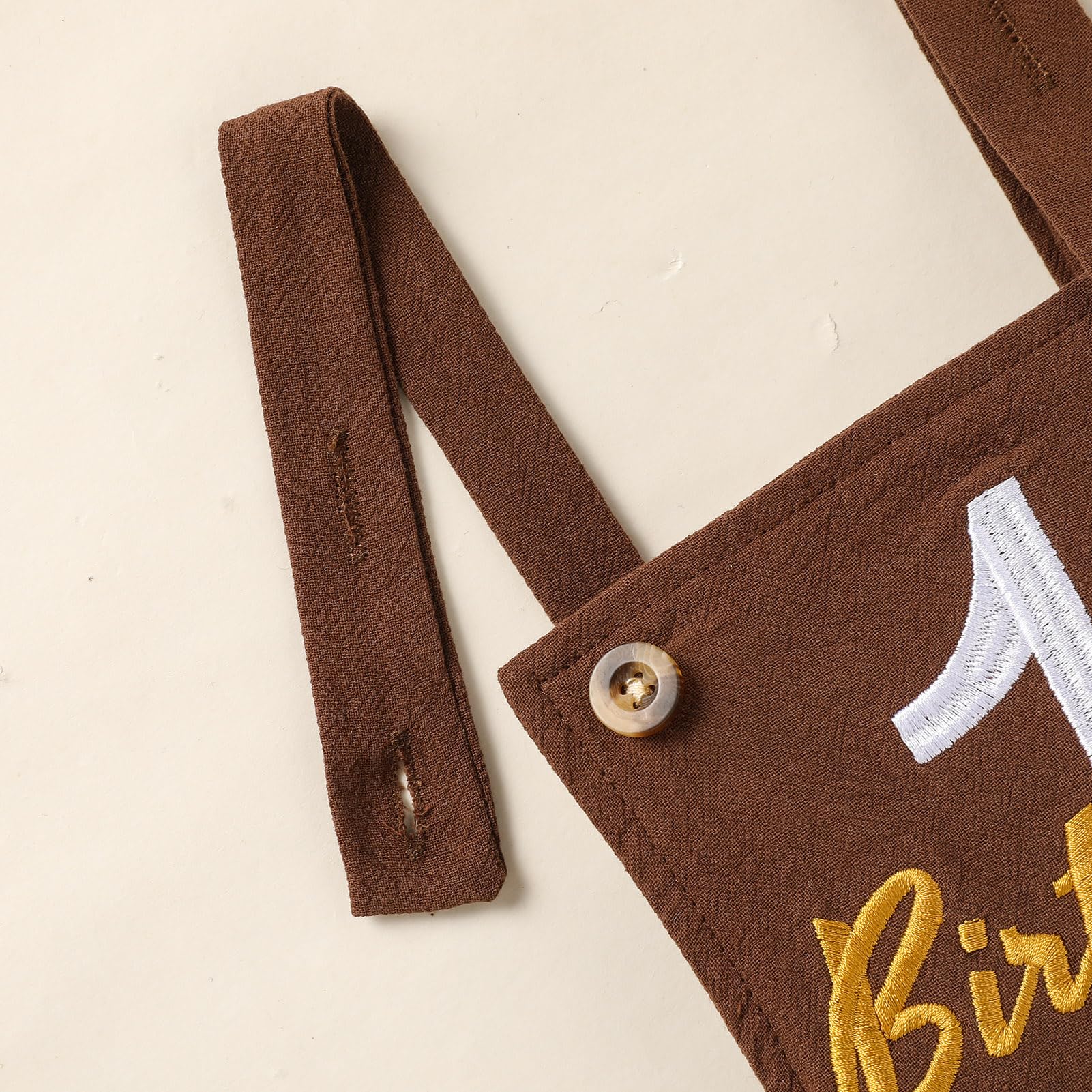 【Chic and Adorable Design】Solid color summer jumpsuit, the middle of the clothes saying "1 birthday".Covered elastic on waist of the bottoms for comfort and stretchy.