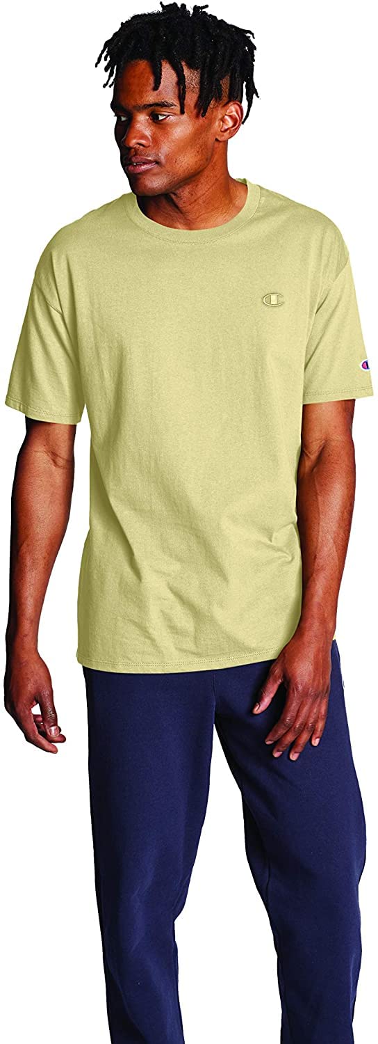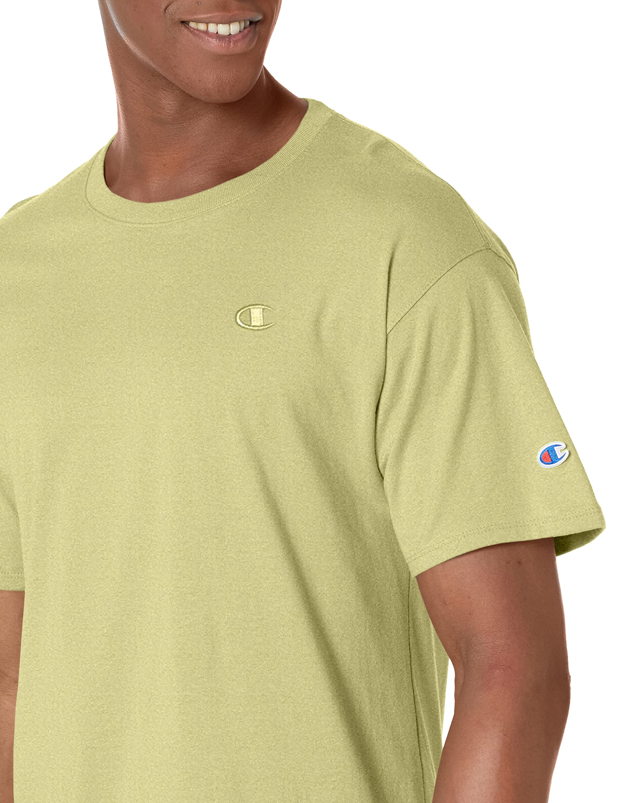 Description Champion®'s Unisex classic cotton tee is one you'll definitely want in your wardrobe in multiple colors. For serious athletes or couch quarterbacks, it offers the comfort and durability of U.S.-grown ring-spun cotton and a perfect fit for easy movement. This soft cotton tee proudly bears the brand's "C" logo in tonal embroidery on the chest and appliquéd on the left sleeve, and is available in 23 amazing colors. It's detailed with a shape-holding ribbed crewneck, short sleeves with reinforced shoulder seams, and soft back neck tape for no-irritation comfort. Buy a bunch of this well-priced classic cotton crewneck tee to wear and enjoy for a long, long time.