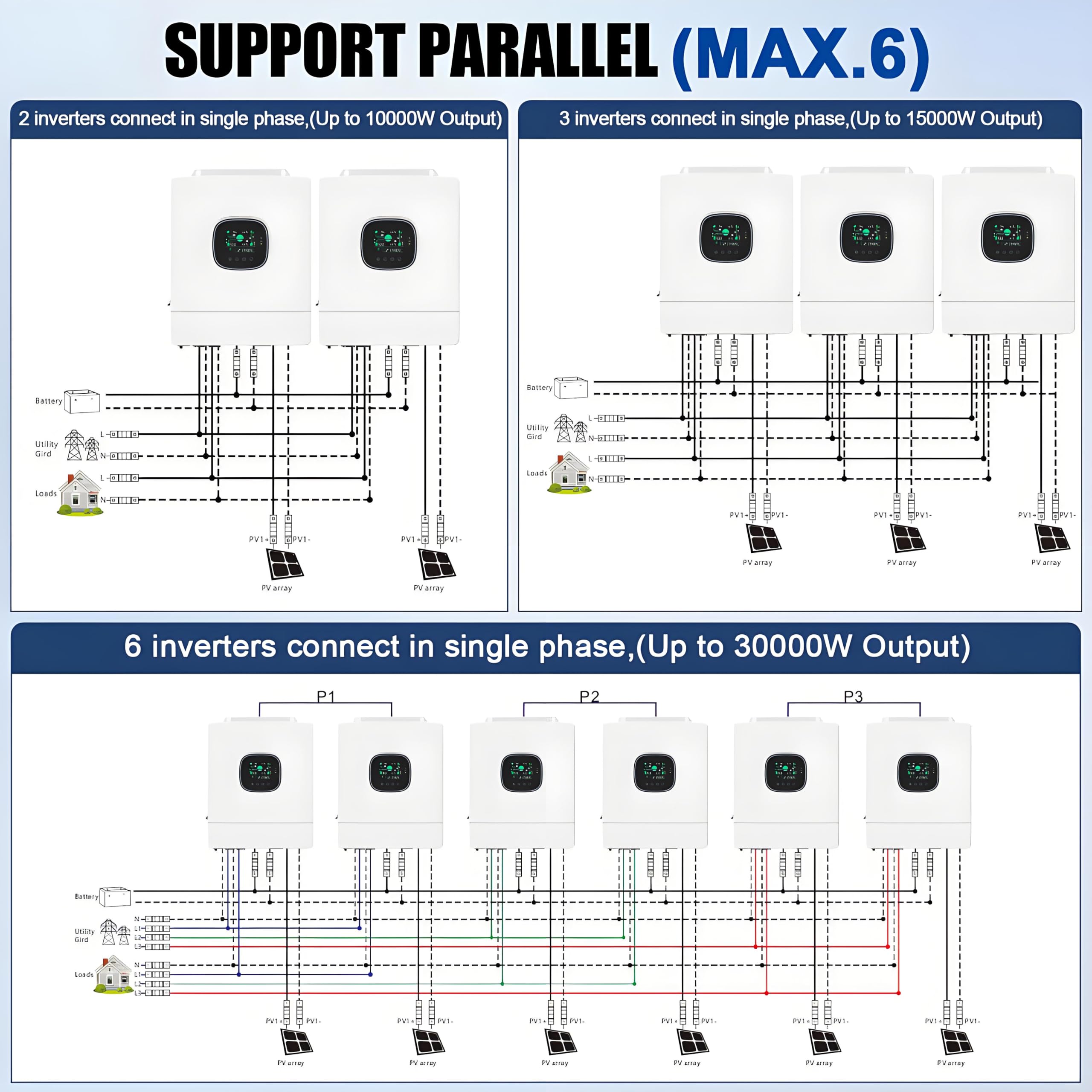 【Scalable Parallel Operation for Whole-Home Backup】Achieve massive 39kW power by connecting up to 6 units in parallel. Supports both single-phase (120V) and split-phase (120V/240V) output, delivering unparalleled flexibility to power your entire home during outages.