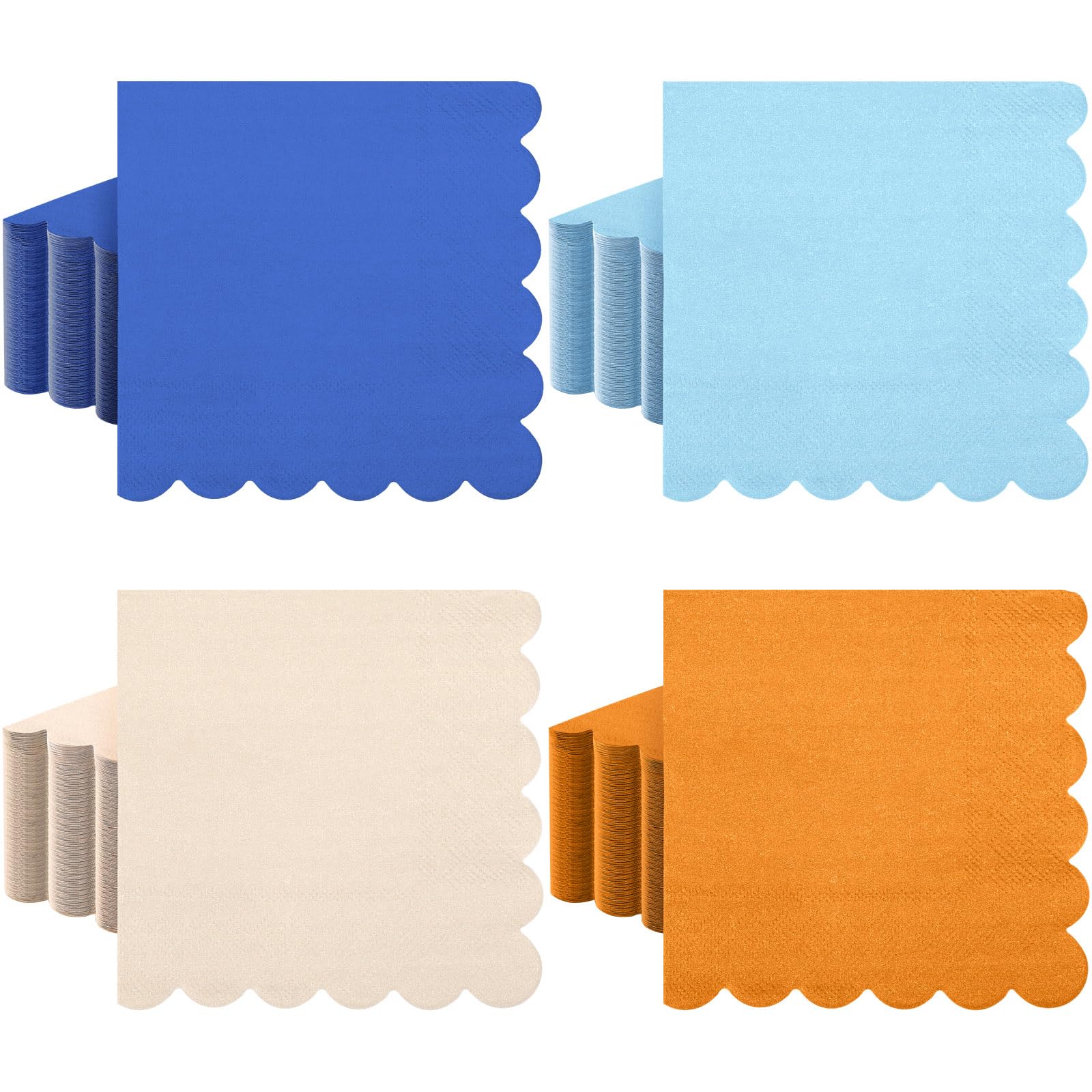 Features: Delightful gift choice: Our pack of scalloped dinner napkins makes a thoughtful gift to present to your loved ones, friends, family, neighbors, kids, and colleagues. They are a delightful pick for housewarming parties, weddings, anniversaries, birthdays, festivals, or other cherished occasions. Let them unwrap quality combined with an exceptional aesthetic. Dessert napkins: Designed not only for cocktails and drinks, but these bridal shower napkins can also be employed during indulgent sweet treats. They provide an effective cleaning solution for those inevitable sticky dessert situations and are suitable for both indoor and outdoor parties. Made of quality paper material, they effortlessly absorb any spills, ensuring clean and hygienic dining. Specifications: Material: paper Color: Orange Blue Size: Folded: 12.5 x 12.5 cm/ 5 x 5 inches Unfolded: 25 x 25 cm/10 x 10 inches Package includes: 100 x Cocktail napkins Notes: Manual measurement, please allow slight errors on size. The color may exist a slight difference due to different screen displays
