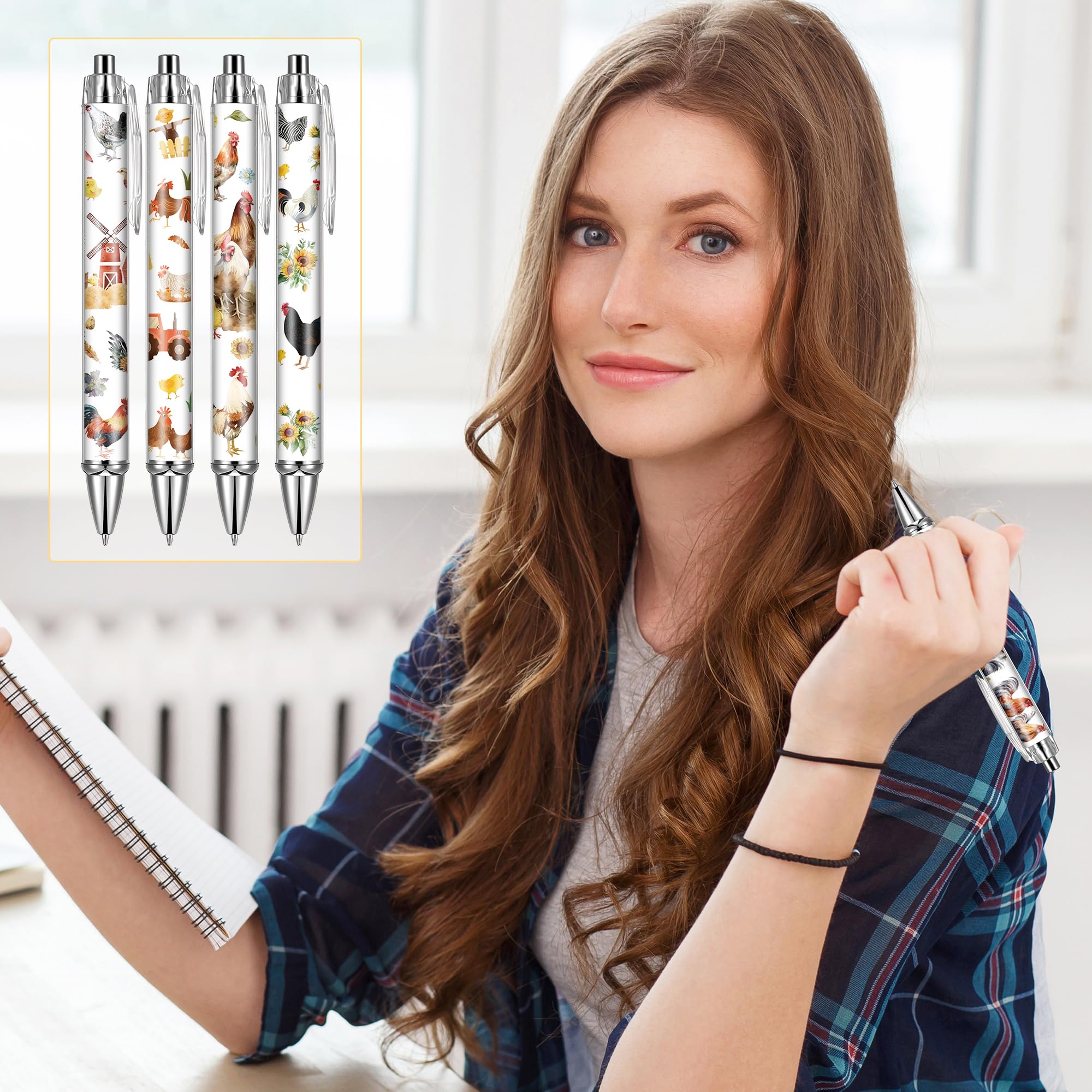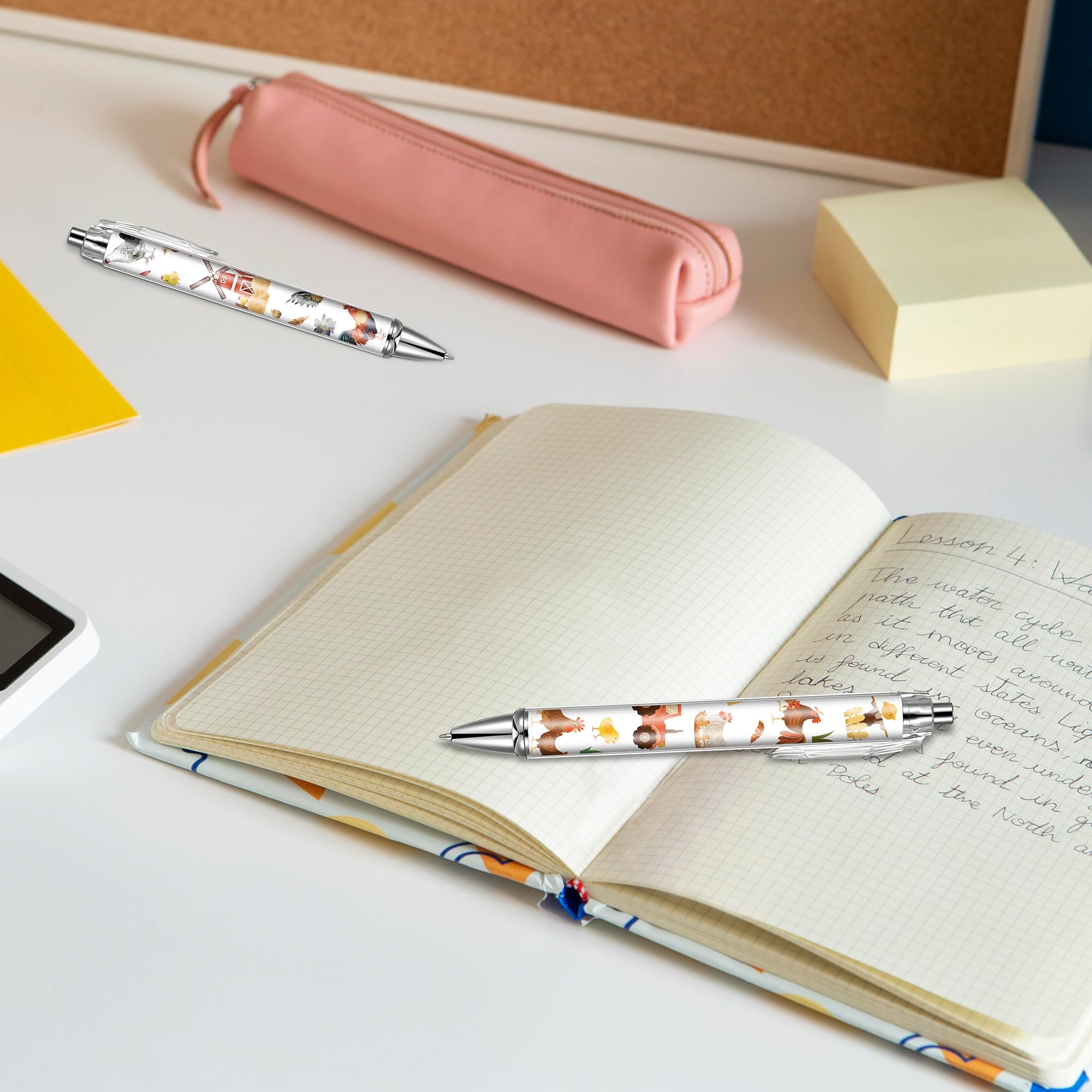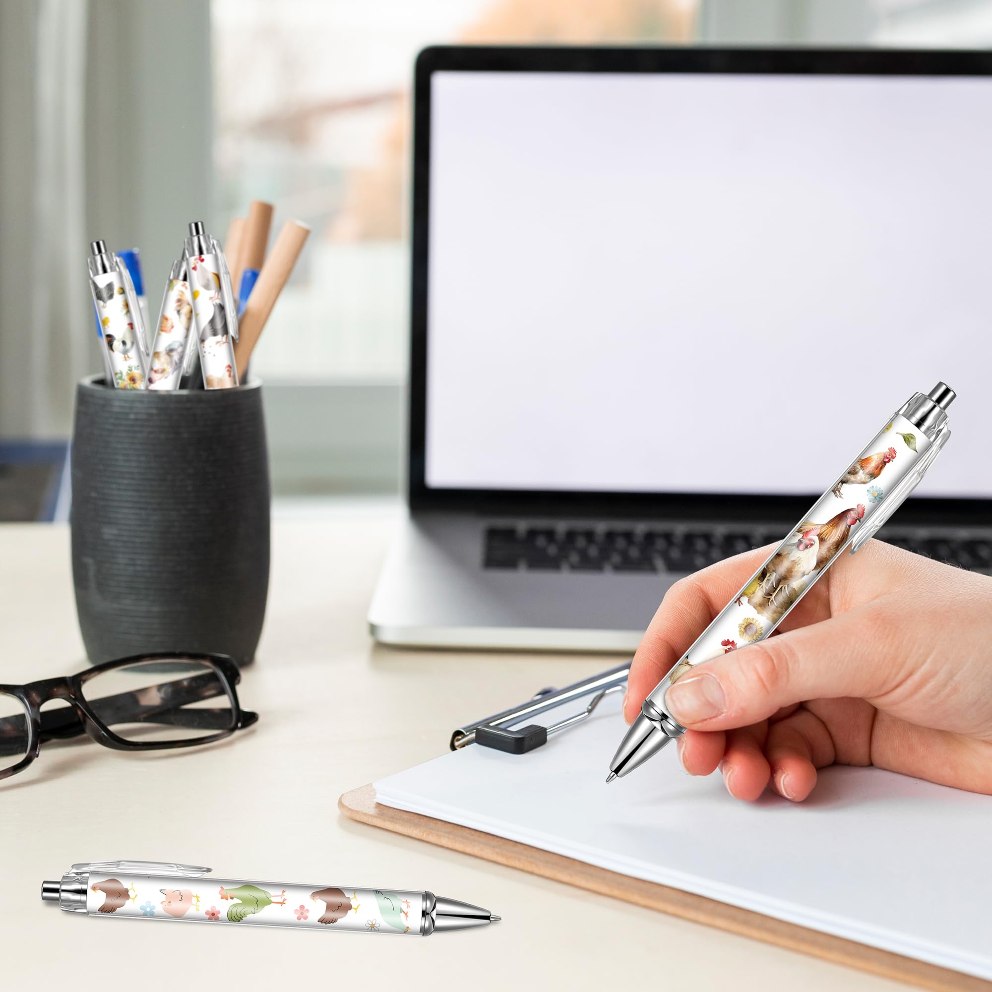 Chicken Themed Ballpoint Pen Set: The length of these pens is 5.4 inch. You will receive 24 pens with chicken theme patterns, there are 8 different patterns on the chicken theme, 3 of each pattern type. Ballpoint pens are available in sufficient quantities and styles to meet your daily writing and replacement needs, and can also be shared with others