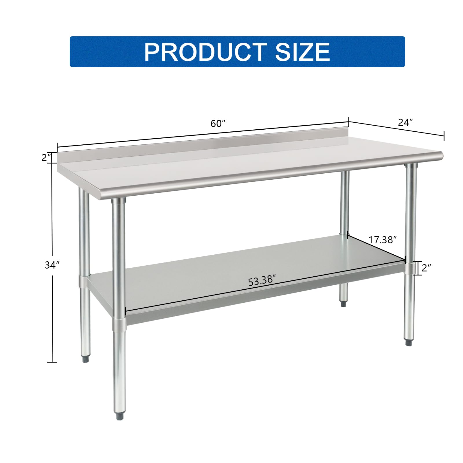 【LARGE STORAGE SPACE】- The 24 x 60 inches dimension provides an ample space for commercial kitchen. The top shelf has a weight capacity of 560 lb and the undershelf has a weight capacity of 460 lb, this unit is sturdy and utilitarian enough for food prep, such as store microwave, oven, air fryer, etc.