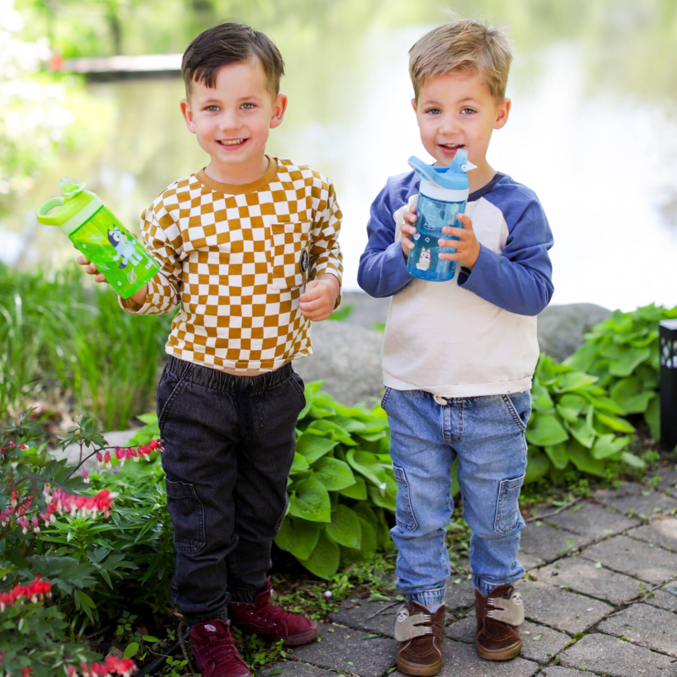 TWO UNIQUE DESIGNS: Each Bluey water bottle has a different design that looks great and makes water fun to carry around.