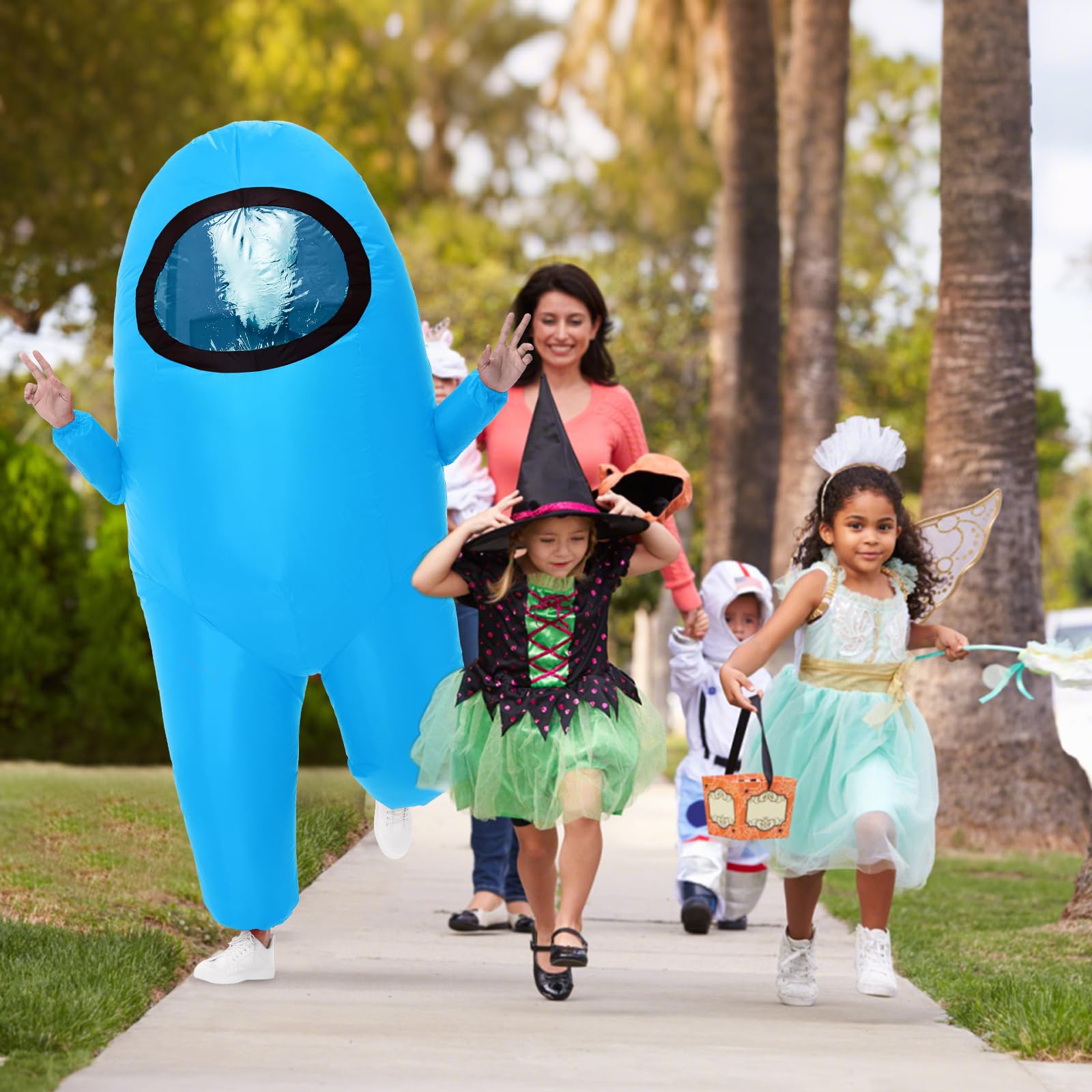 【Inflatable In 1 Minute】This Halloween inflatable costume inflates very quickly, it comes with a powerful wind blower and inflates in seconds without wasting your time. Don't turn off the blower when you're done inflating, it will continue to work and stay inflated throughout the event. You can retract your hand to get closer to the classic game characters and it won't leak.
