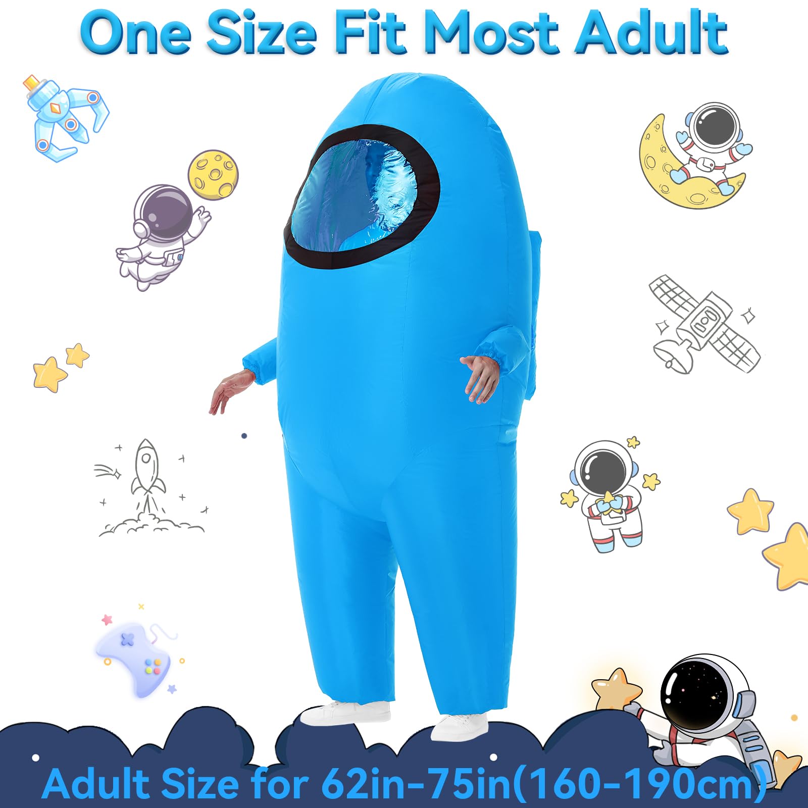 【Superb Workmanship & Design】This fun inflatable costume is a well-designed piece of work with a comical and funky spaceman look and wide see-through windows so you don't have any obstructed views. Whether it's a costume party or a Halloween bash, you can wear it to win everyone's applause and shouts of admiration and become the envy of all at any time!