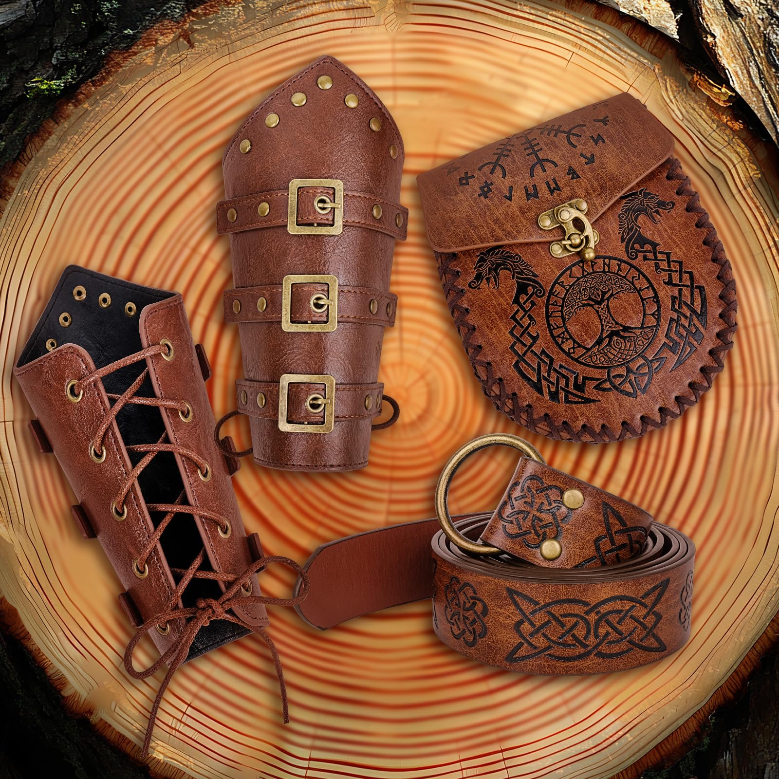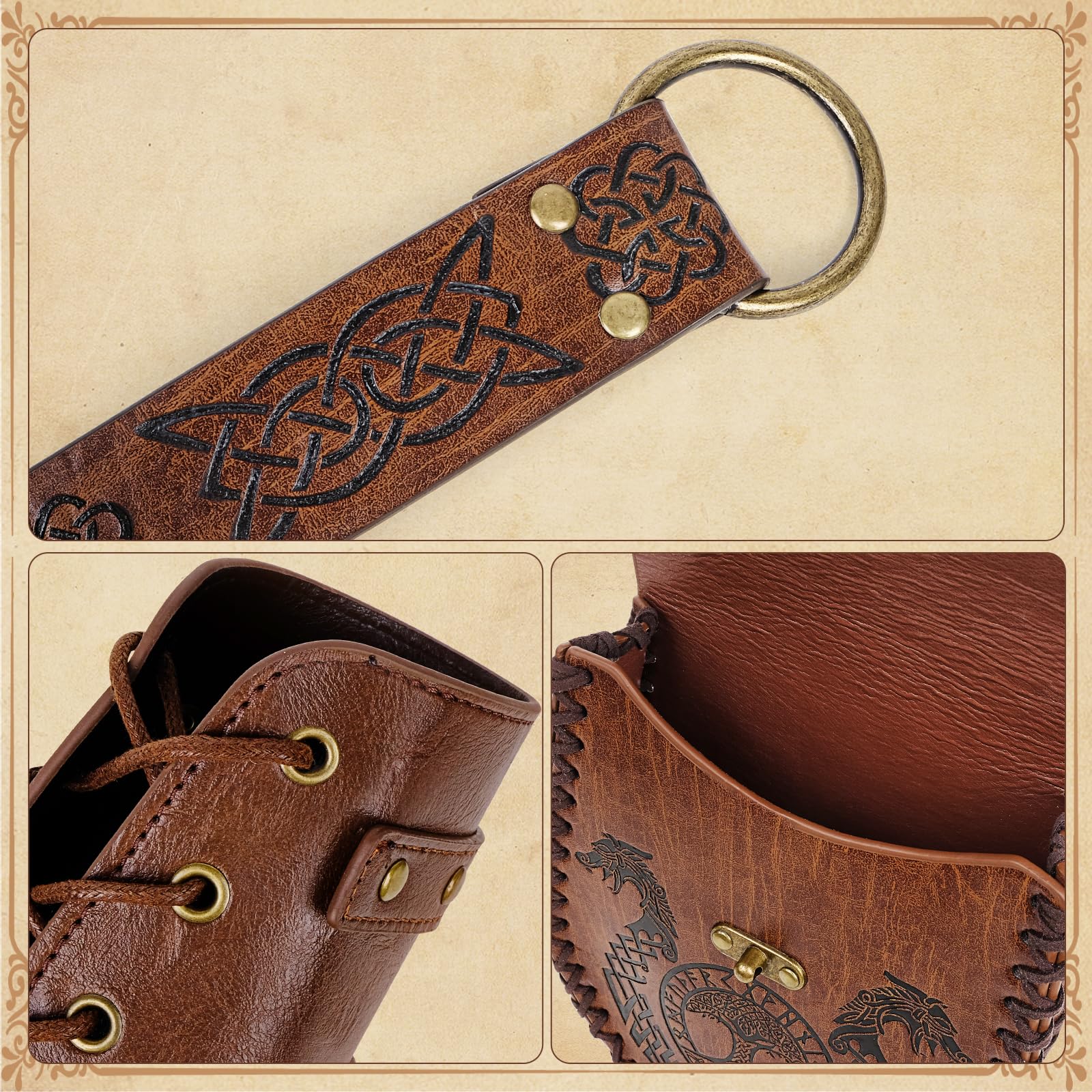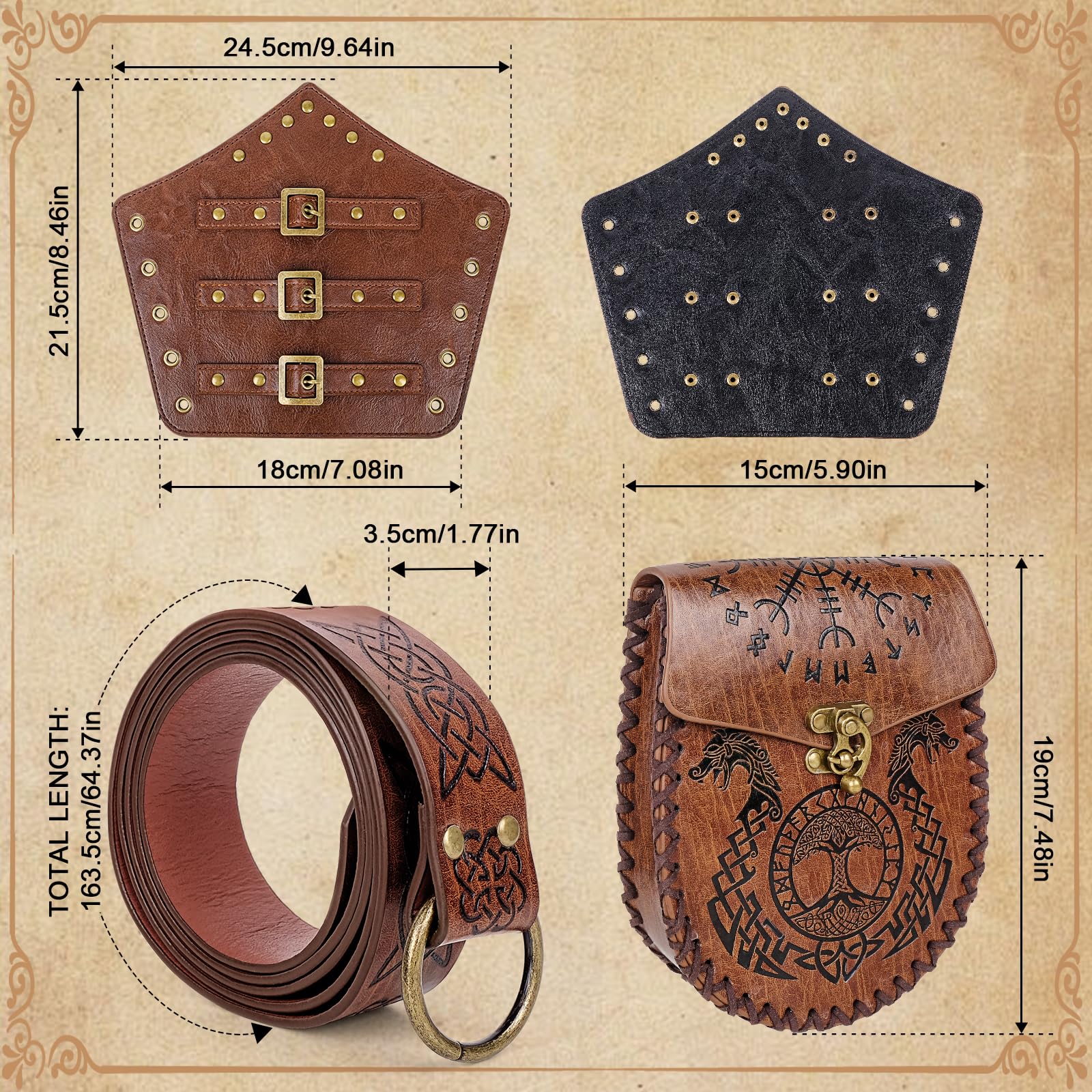 Amazing Craftsmanship:Experience the pinnacle of artistry with the Renaissance Accessories Set. Each piece, from the intricate leatherwork on the bracers to the Viking belt's elaborate designs, showcases mastery in every stitch. This set embodies the essence of Renaissance craftsmanship, inviting you to relive the era's glory.