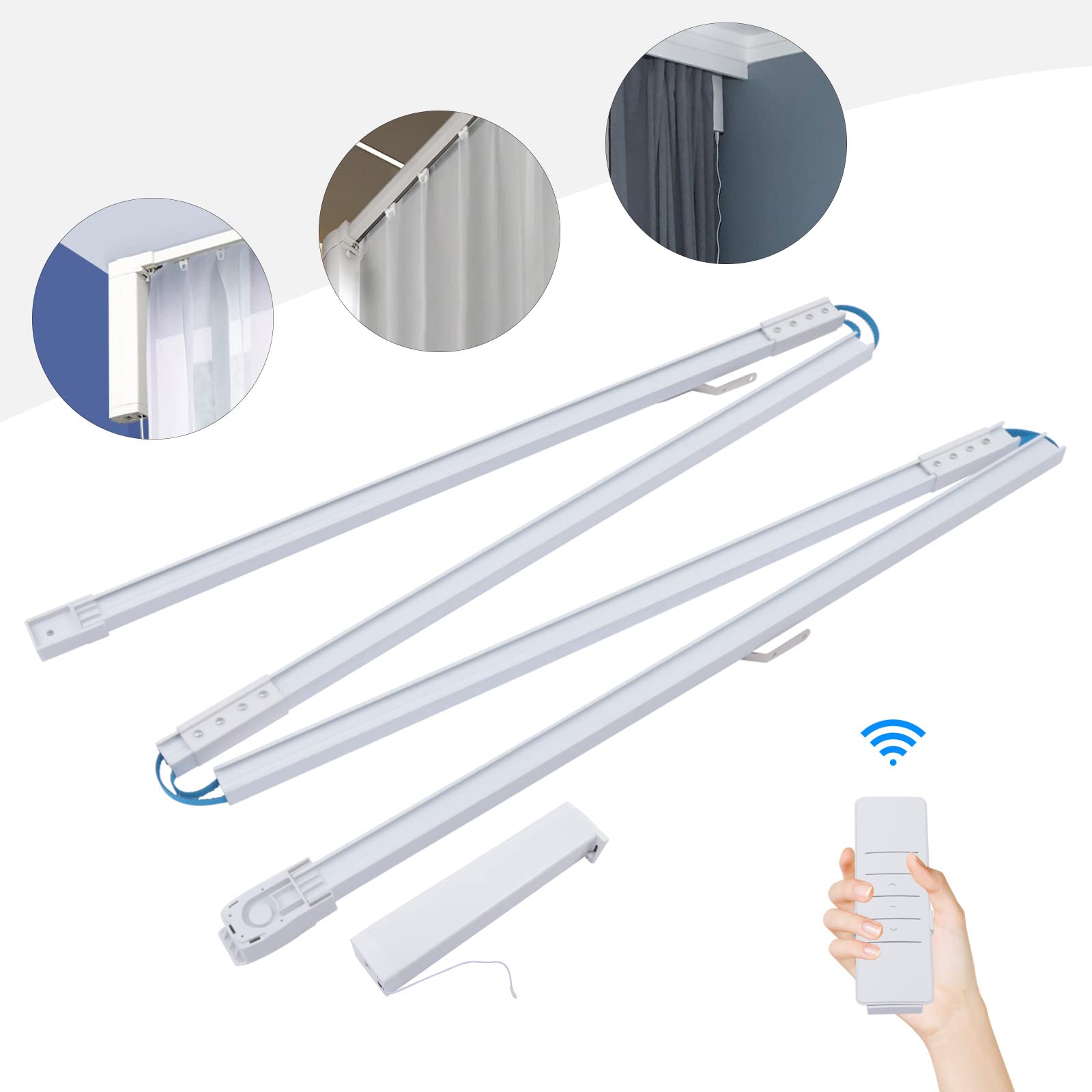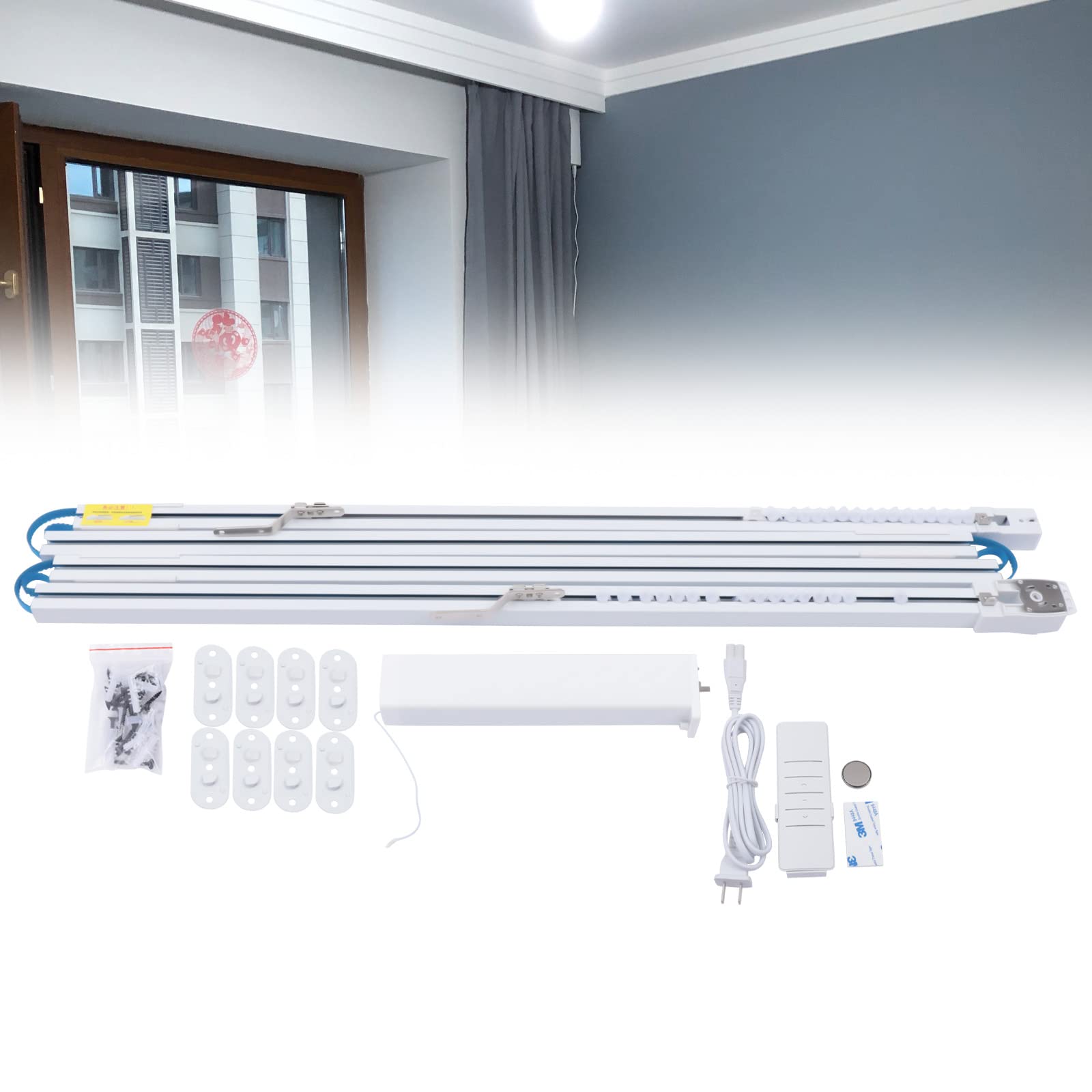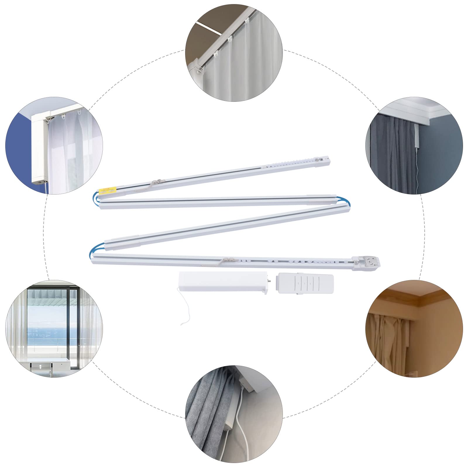 Description This electric curtain track will be your intelligent curtain housekeeper. In the morning, it will welcome the first beam of sunlight for you automatically, to light up the good time of the family. In the evening, it will automatically close, shielding the window from distractions and worries. With it, you will say goodbye to manually pulling the curtains, and not be disturbed by tedious things. Application It can be used in the bedroom, children's room, living room, study, etc. Specification Track Material: Aluminum alloy Boom Arm Material: Stainless steel Plug: American Standard Color: Silver Voltage: 110V Frequency: 50/60Hz Operating Noise: ≤ 30db Motor: DC Motor Power: 45w Running Speed: 14cm/s(5.51in/s) Load Capacity: 50kg/110.23lbs Gross Weight: 3.7kg/8.15lbs Net Weight: 2.8kg/6.17lbs Package Size: 220*11*11cm/86.61*4.33*4.33in Motor Size: 5.1*6*28.9cm/2.01*2.36*11.38in Single Section Slider Length: 96cm/38in Section Slider Length: 4m/13.12ft Package Included 4* Slide Rails 1* Motor 1* Remote Control 1* Power Cord All Accessories for Installation Notes 1.Please note that we will take the long track section processing, you only need to do simple splicing. 2.We recommend downloading SmartLife or TuyaSmart for easy control. 3.Please note you can voice control via Amazon Alexa, Google Home, and Apple Siri. 4.Please note that it is suitable for all curtain types that use curtain hooks. Not suitable for eyelet, grommet, loop curtains 5.Please note that the motor's power cord length is 39.3in, so you need to reserve the socket at 39.3in from the roof. 6.Please note that the width of the curtain box inside diameter is 3.93in or more.