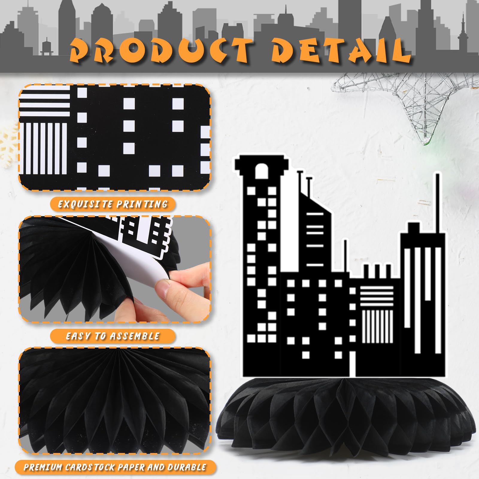 Versatile Application: these city honeycomb centerpieces is a suitable to the men's black birthday party, festivals, activities and so on; They will bring a joy party memory to your family