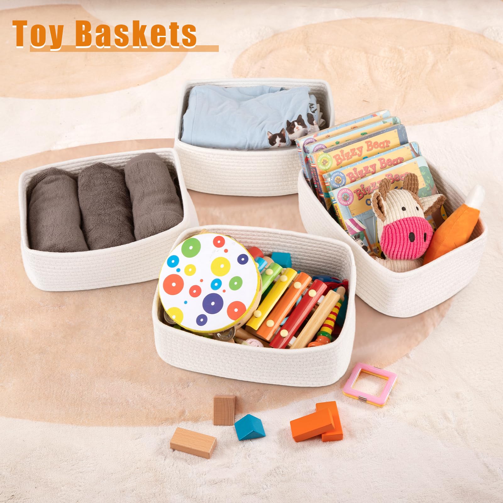 Decorative Storage Bins: We designed the product to be square, stand more firmly, but also easier to regain shape. The neutral design and color can be adapted to most of the decoration, and the 4-piece set can be sorted to store cosmetics, socks, jewelry, baby diapers, towels, remote controls, keys, credit cards, wallets, charging cables, toys, snacks, paper towels, and more