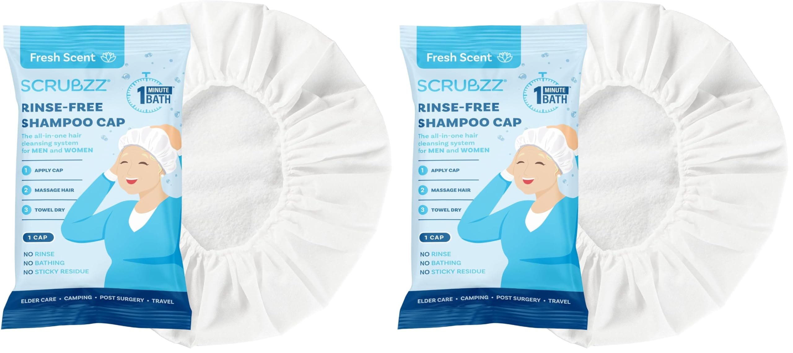 Scrubzz rinse free shampoo caps are a premoistened, no rinse hair cleansing solution that require absolutely no water