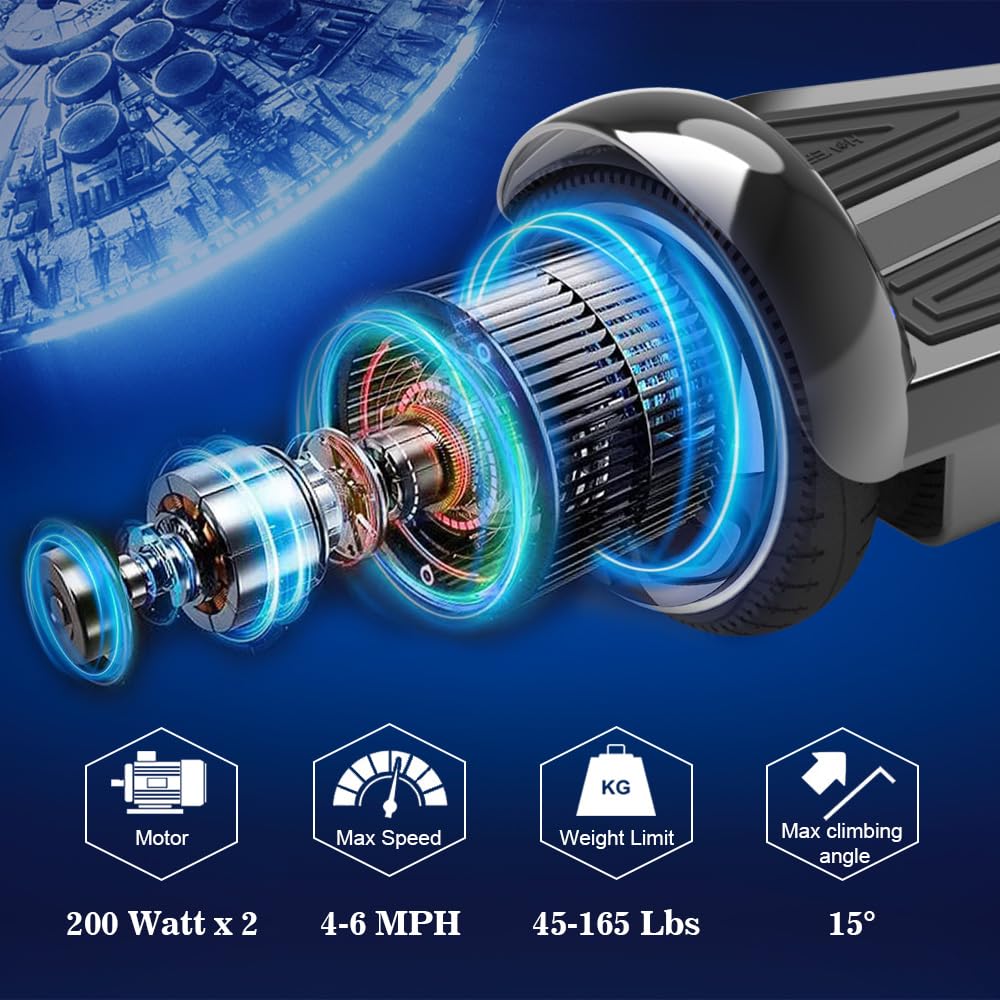 Powerful Dual Motor Performance: Two 200W motors push the scooter up to about 6.2 mph, offering thrilling yet kid-friendly speed. Its agile gyroscopic control helps even beginners glide steadily over gentle slopes. The sturdy deck supports riders up to 165 lbs (75 kg) with confidence.