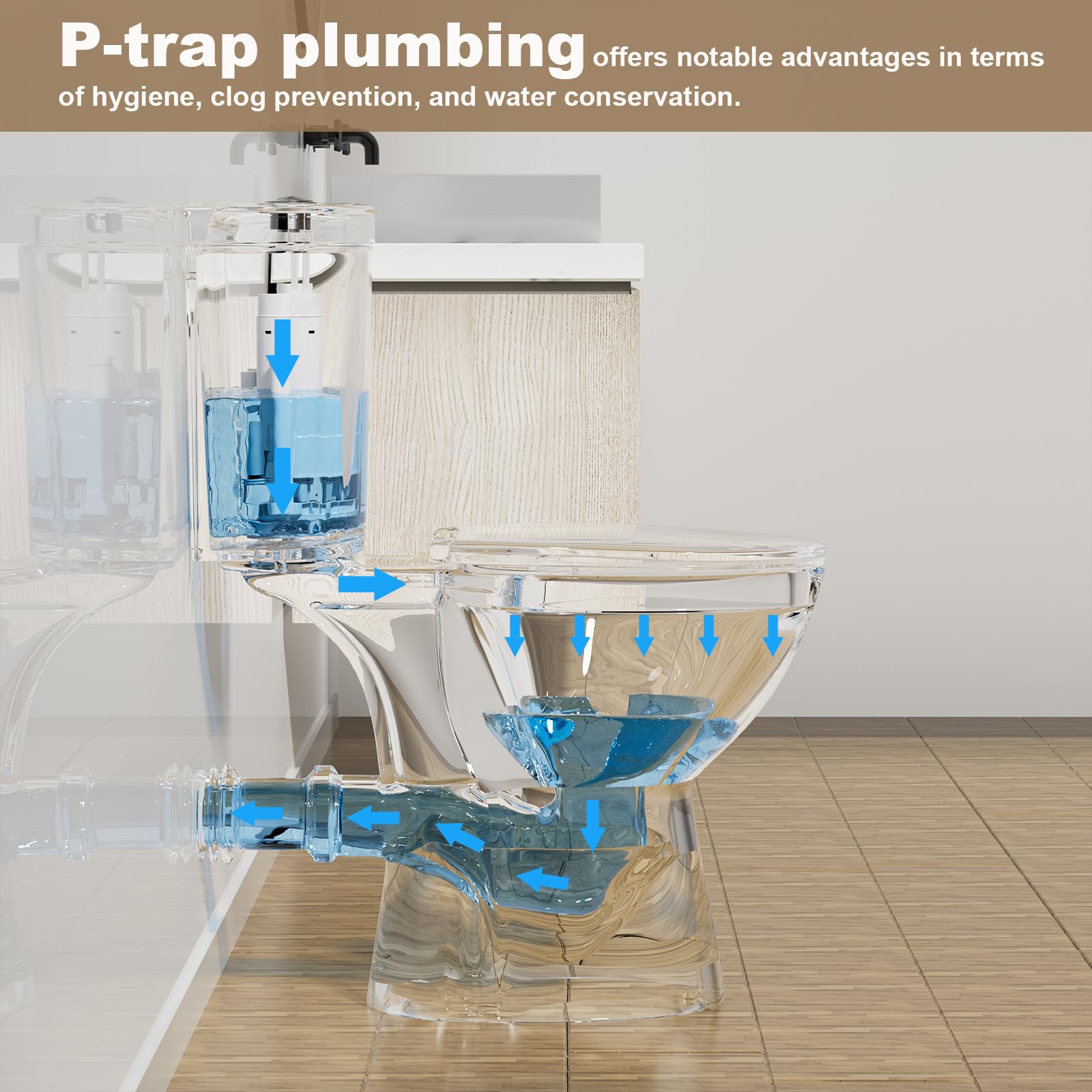 Versatile Installation Options: Featuring a P-Trap design, this 19 inch high toilets is suitable for rear drain and wall drain installations. For added flexibility, consider the option of combining it with a macerator pump for a broader range of applications.