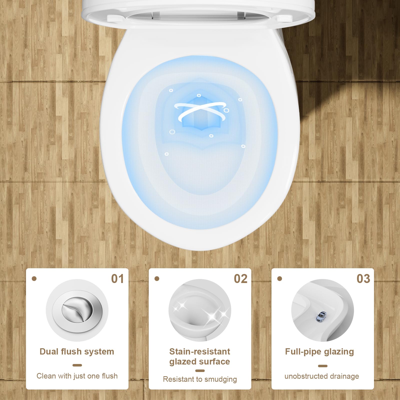 Effortless Cleaning: The extra tall toilet boasts a seamless, consistent base, enhancing the bathroom's aesthetics while minimizing dirt accumulation. Its design makes it easy to clean, ensuring a hygienic and visually appealing bathroom space.