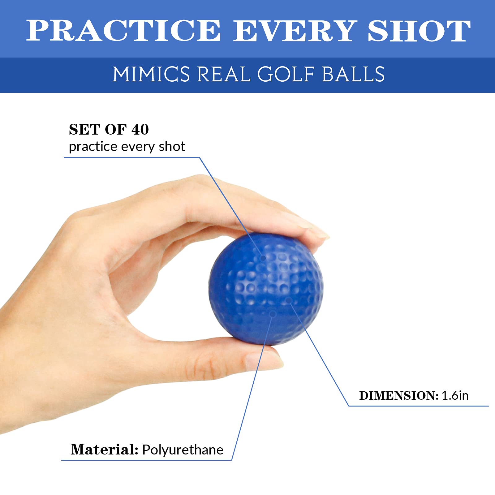 Material and Size: These foam practice balls are made of durable soft resin PU rubber which make these kids fun golf balls more soft, light-weight and flexible. Ball diameter: about 1.6 inch.The balls compresses slight upon impact just like a real golf ball, giving it real "pop" off the club face.