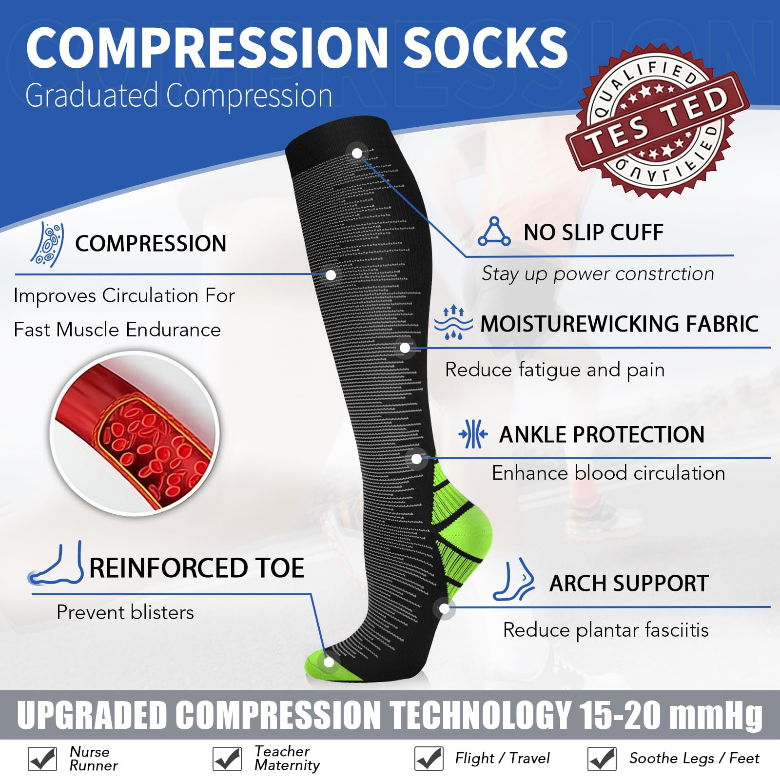 Reduce Injuries - Provide mild squeezing for warmness and enhance blood moving through your legs. Remove stress and stimulate every cell, relieves symptoms varicose veins and excess fluid retention. Help relieve pain & discomfort related to plantar fasciitis, Provides true graduated compression to support your legs, reduce fatigue, soreness, cramping and prevent injuries at the same time.