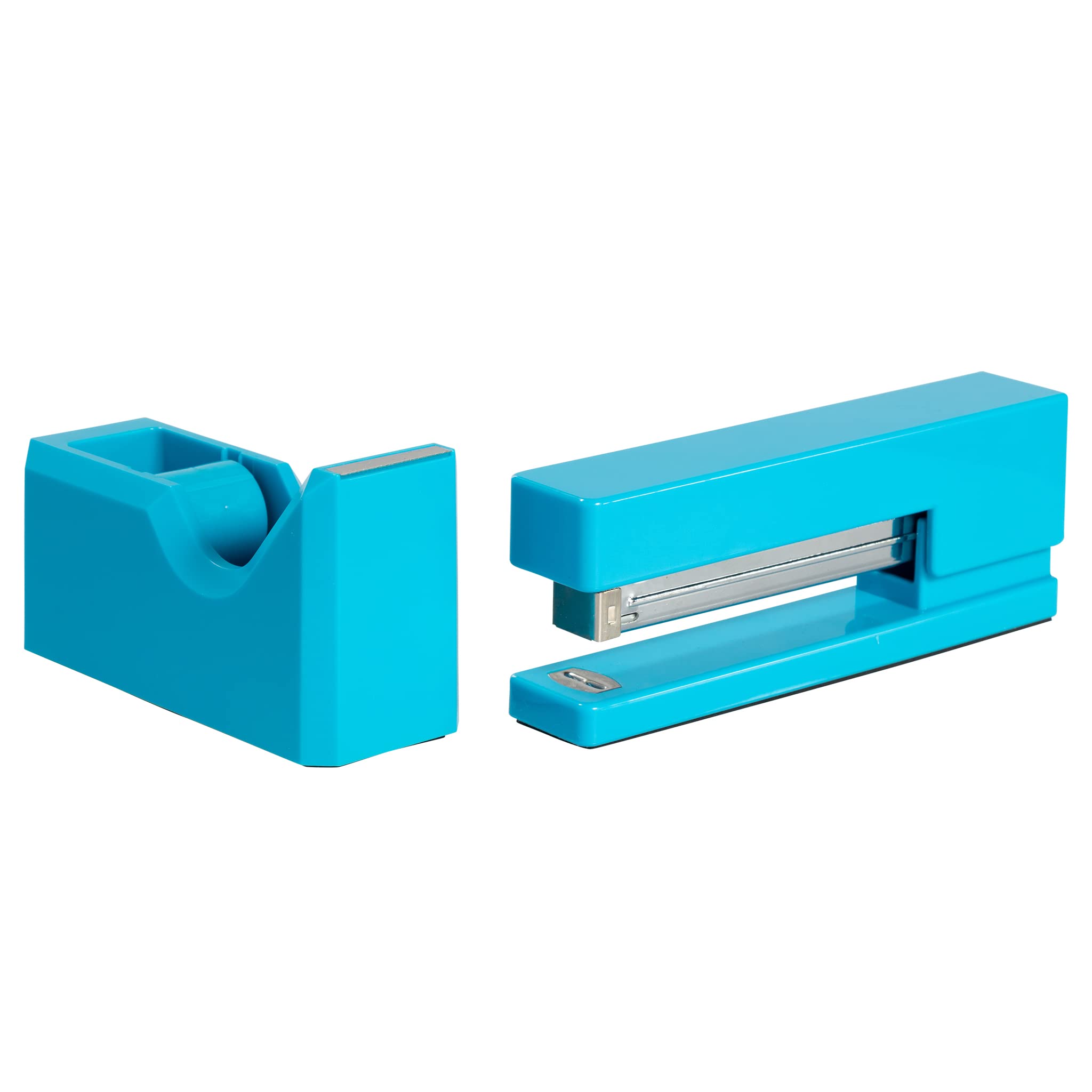 Stapler Size: 6 x 2.5 x 1.125 inches | Tape Dispenser Size: 4.5 x 2.5 x 1.75 inches