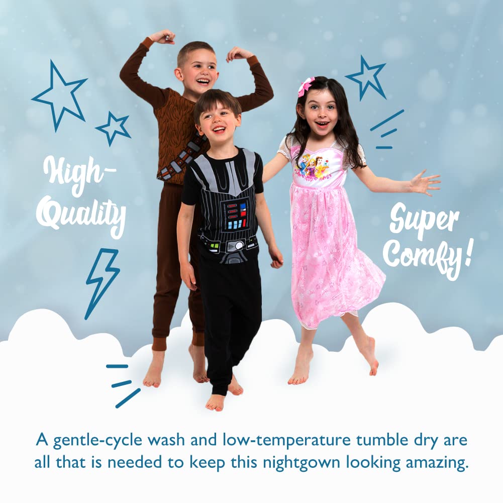 FUN PRINCESS CLOTHES: Comfy shoulders and soft 100% polyester mean this girlsβ sleepwear gown will keep your little one sleeping comfortably. The easy pull-on design means it is quick and easy to put on or off for bedtime or dress-up play.