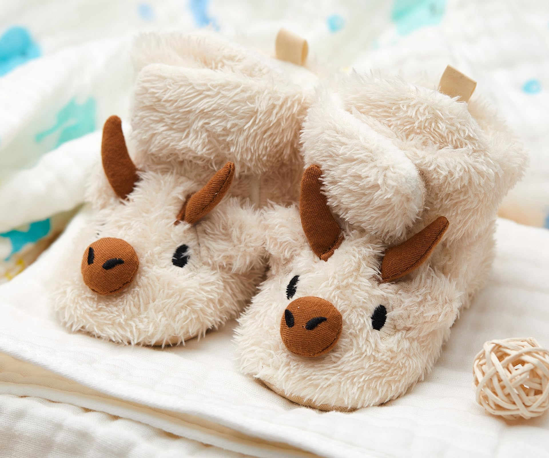 Soft and Breathable Material: made from soft, breathable cotton, these highland cow baby slippers ensure your baby's skin stays safe and comfortable, providing a delightful wearing experience