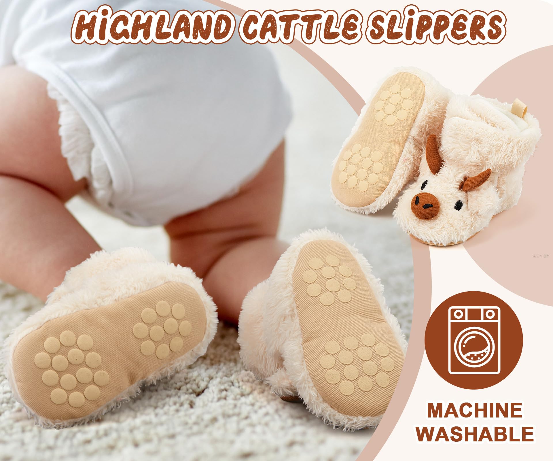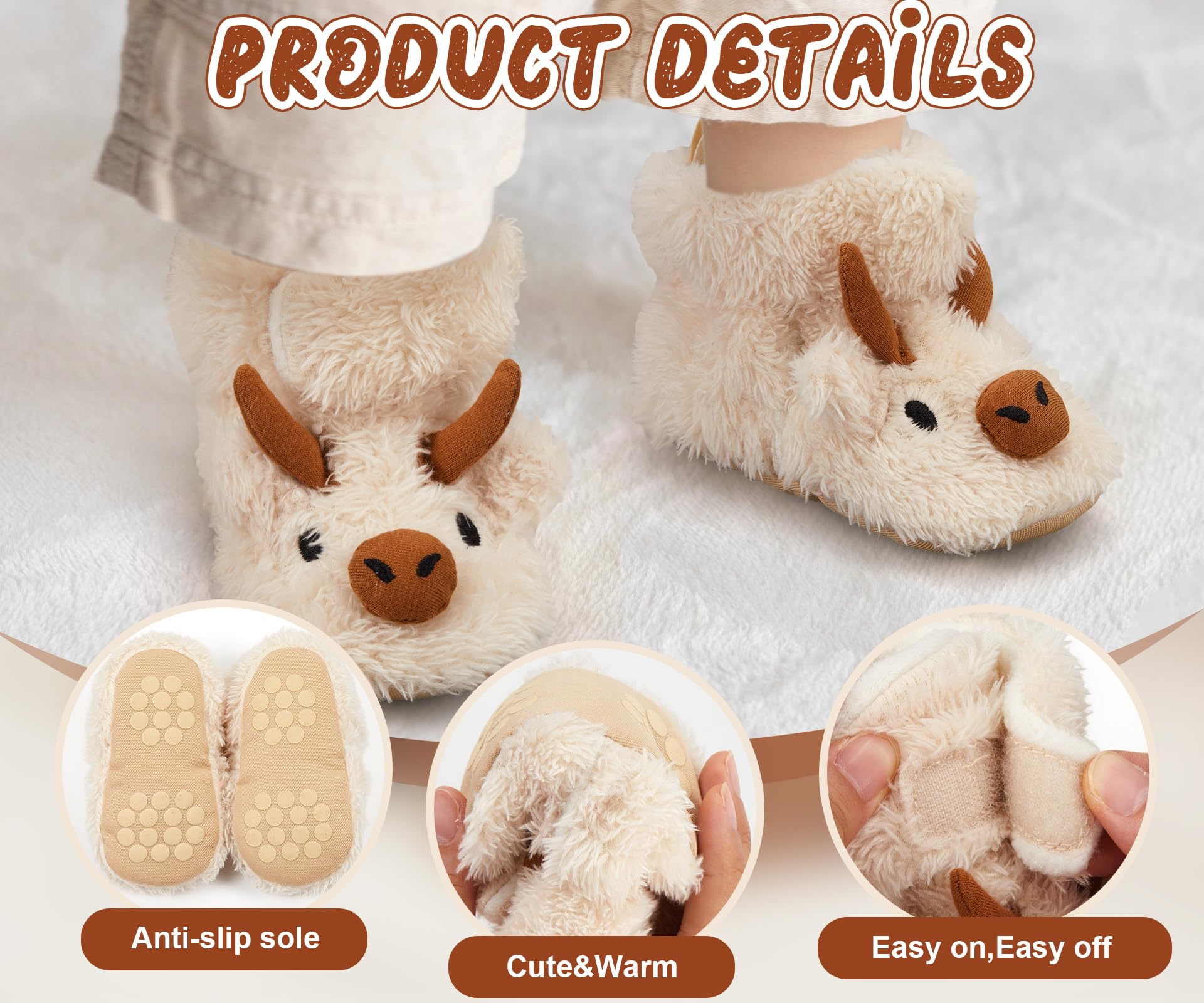 Warm Design: our Highland Cow design slippers keep your baby's feet warm all winter long; Featuring a non-slip and durable sole, these slippers are suitable for indoor and outdoor adventures