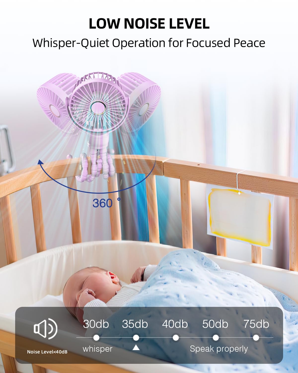 FLEXIBLE-TRIPOD-CLIP: The fan is equipped with a flexible tripod clip, which can be easily attached to the stroller handlebar, car seat, crib, bike seat, treadmill, or any other flat surface. It is convenient to use and provides a stable cooling effect.