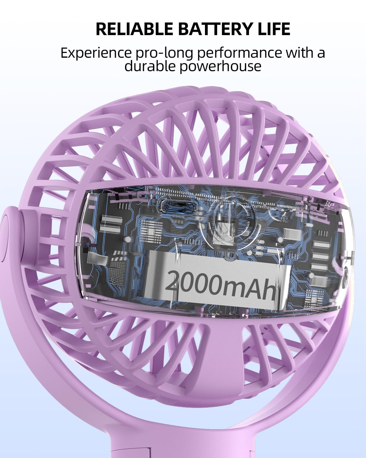 PORTABLE & EASY TO USE: The fan is battery-powered, so you can take it with you wherever you go. It is lightweight and compact, making it easy to carry and store. The built-in rechargeable battery provides long-lasting power and can be recharged via USB.
