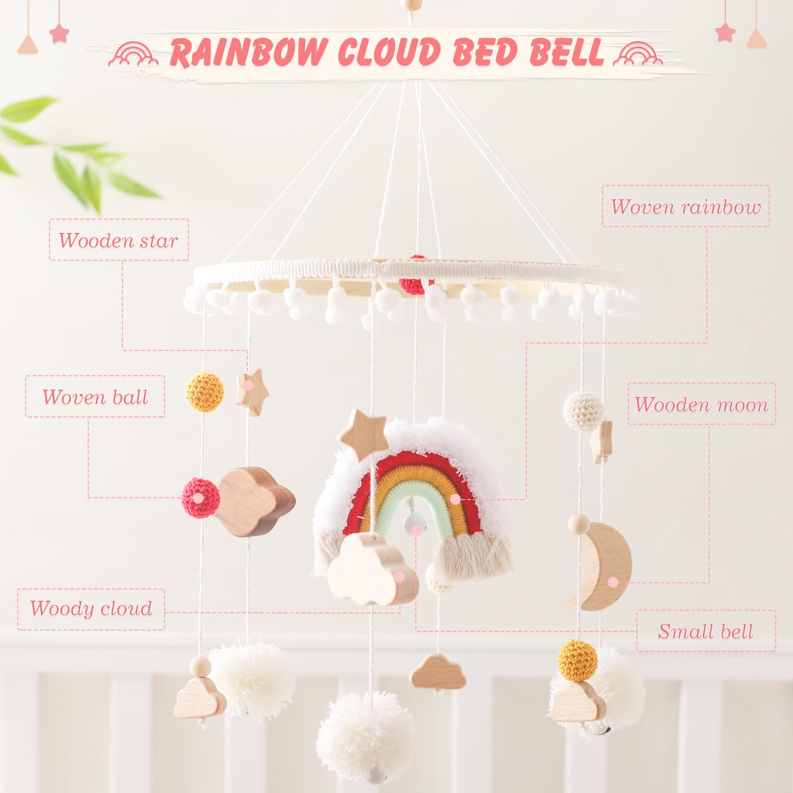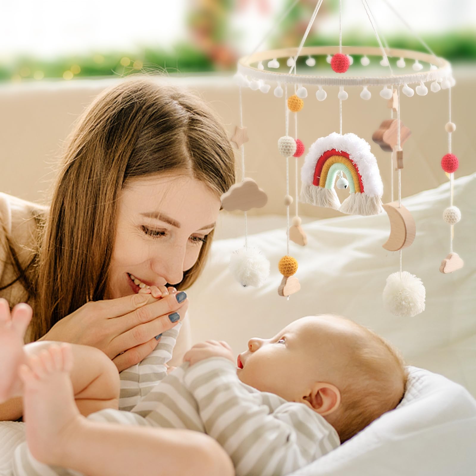 🌈RAINBOW BABY MOBILE - Rainbow baby mobile is in colorful and natural colors . Rainbow crib mobile, the novel design is more popular with babies. Perfectly match any nursery decor or boho decor for any room of the house.