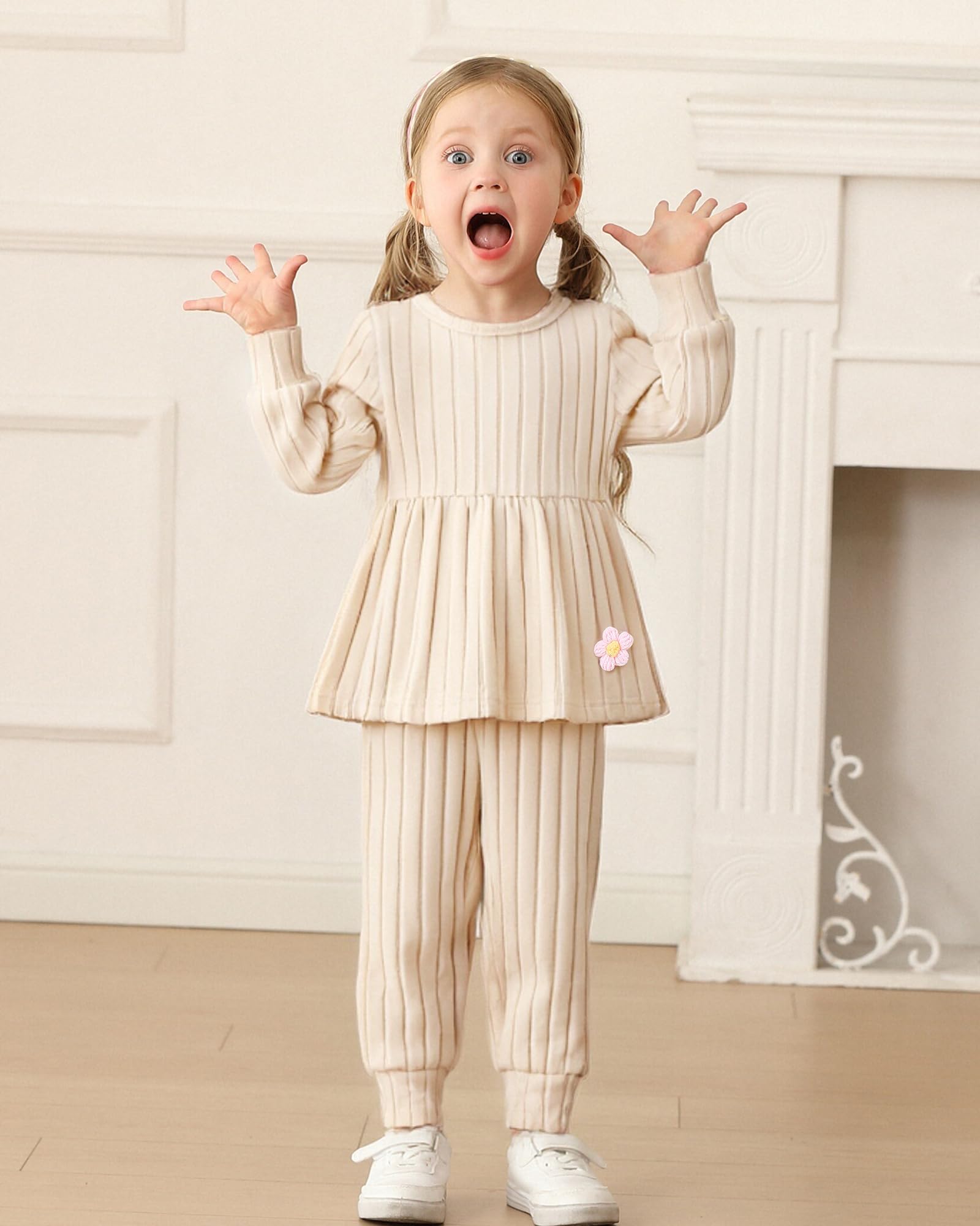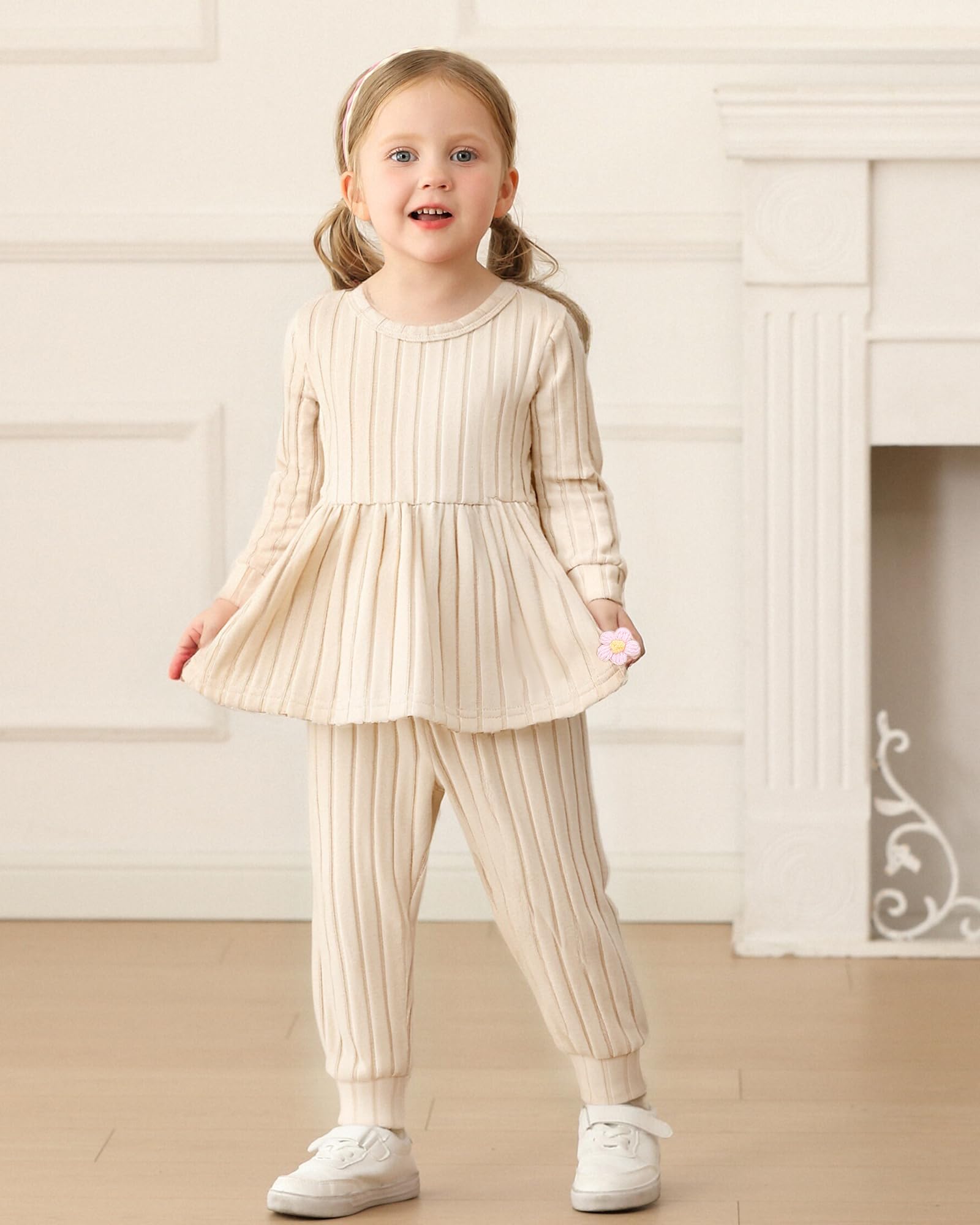 Features: This toddler girl clothes consists of a long-sleeved ribbed skirt top and tight pants. The overall combination is simple yet fashionable. Make your girl play outdoors relaxed and comfortable