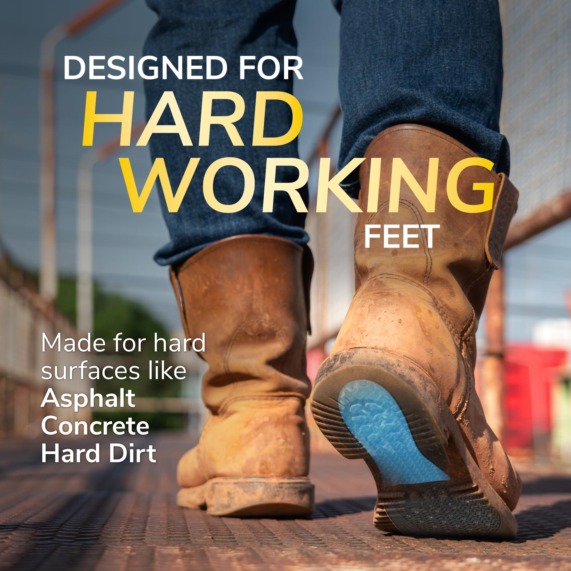 MASSAGING GEL TECHNOLOGY: The only extended gel cushioning that reduces impact and shock to muscles and joints from working long hours on hard surfaces like asphalt, concrete, cement, hard dirt, and wood floors - helping reduce daily foot and leg stress