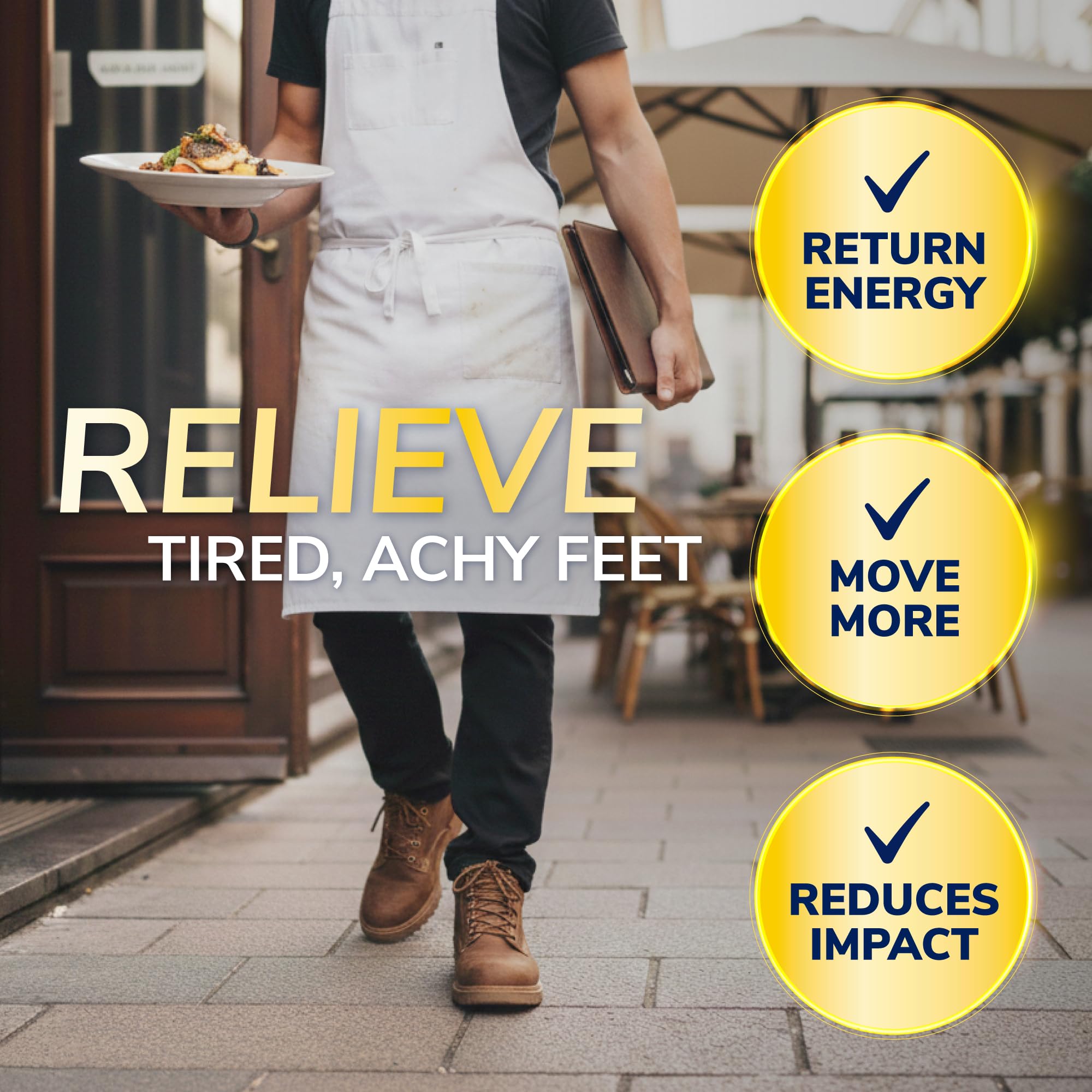 ELIMINATES TIRED, ACHY FEET & LEGS TO STAY ENERGIZED: Distributes foot pressure evenly to reduce fatigue and joint strain, eliminates sore muscles, and keeps you feeling more energized even during your longest work day