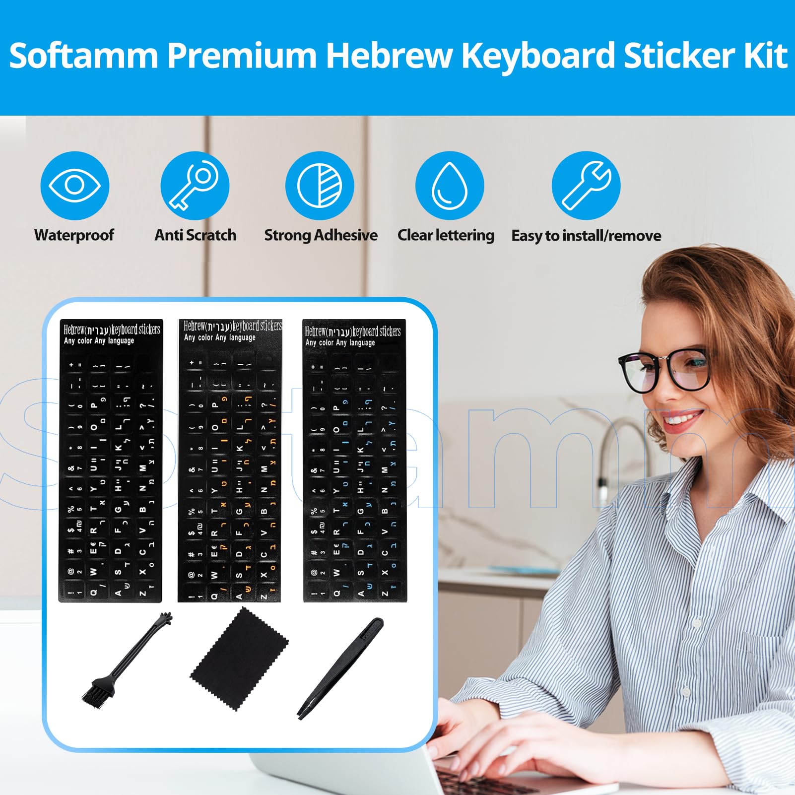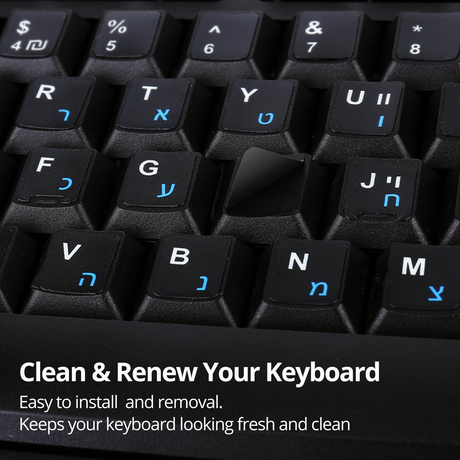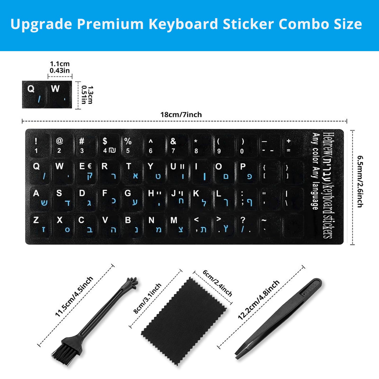 【Package List】 This hebrew keyboard stickers set includes 2 x Hebrew keyboard stickers, 1 x Tweezer, 1 x Keyboard Cleaning Brush, and 1 x Microfiber Cleaning Cloth,perfect for use on any laptops, notebooks, or PC computers.