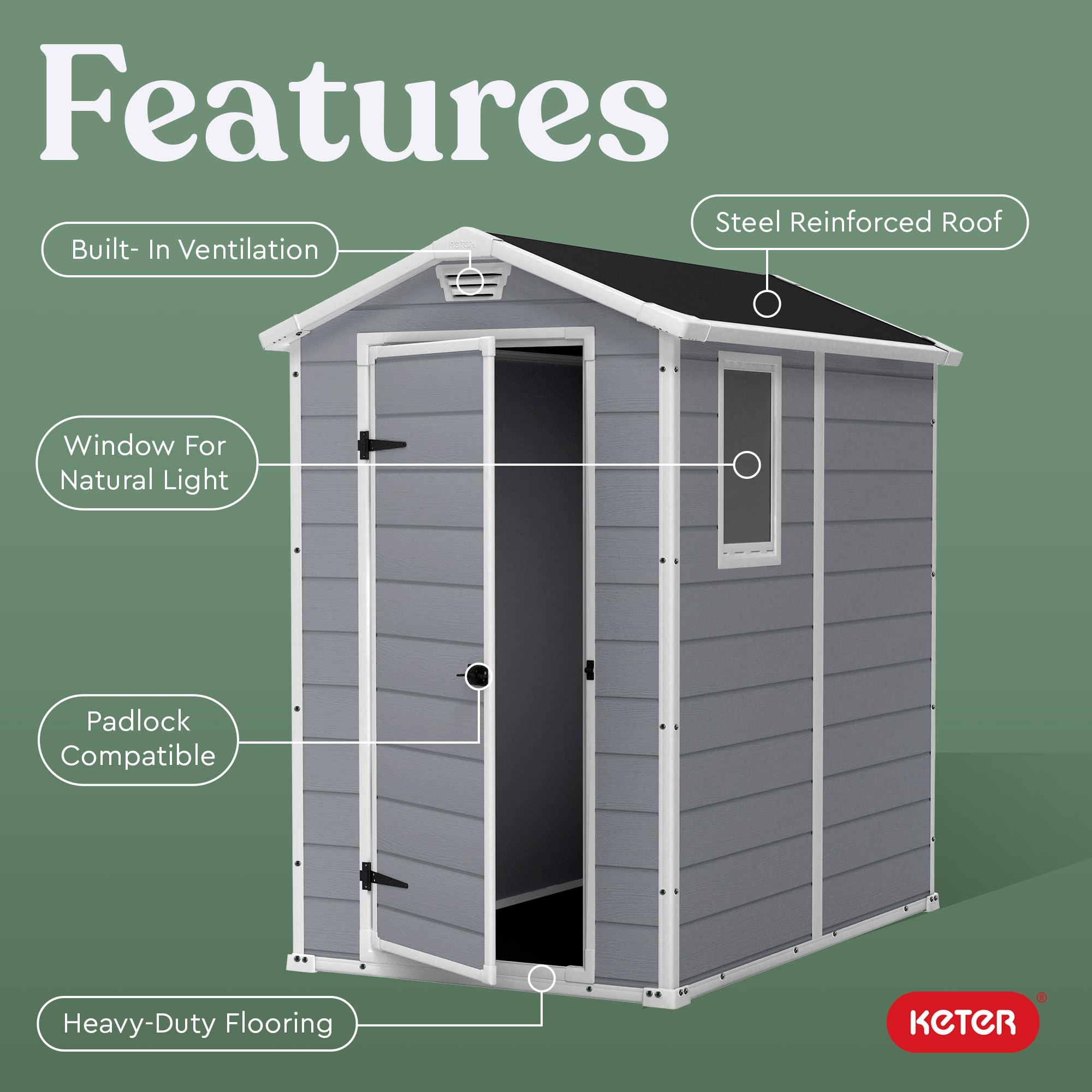 RESIN CONSTRUCTION: Made from polypropylene resin plastic & steel reinforced to ensure durability - will not peel, rot or rust & never needs painting