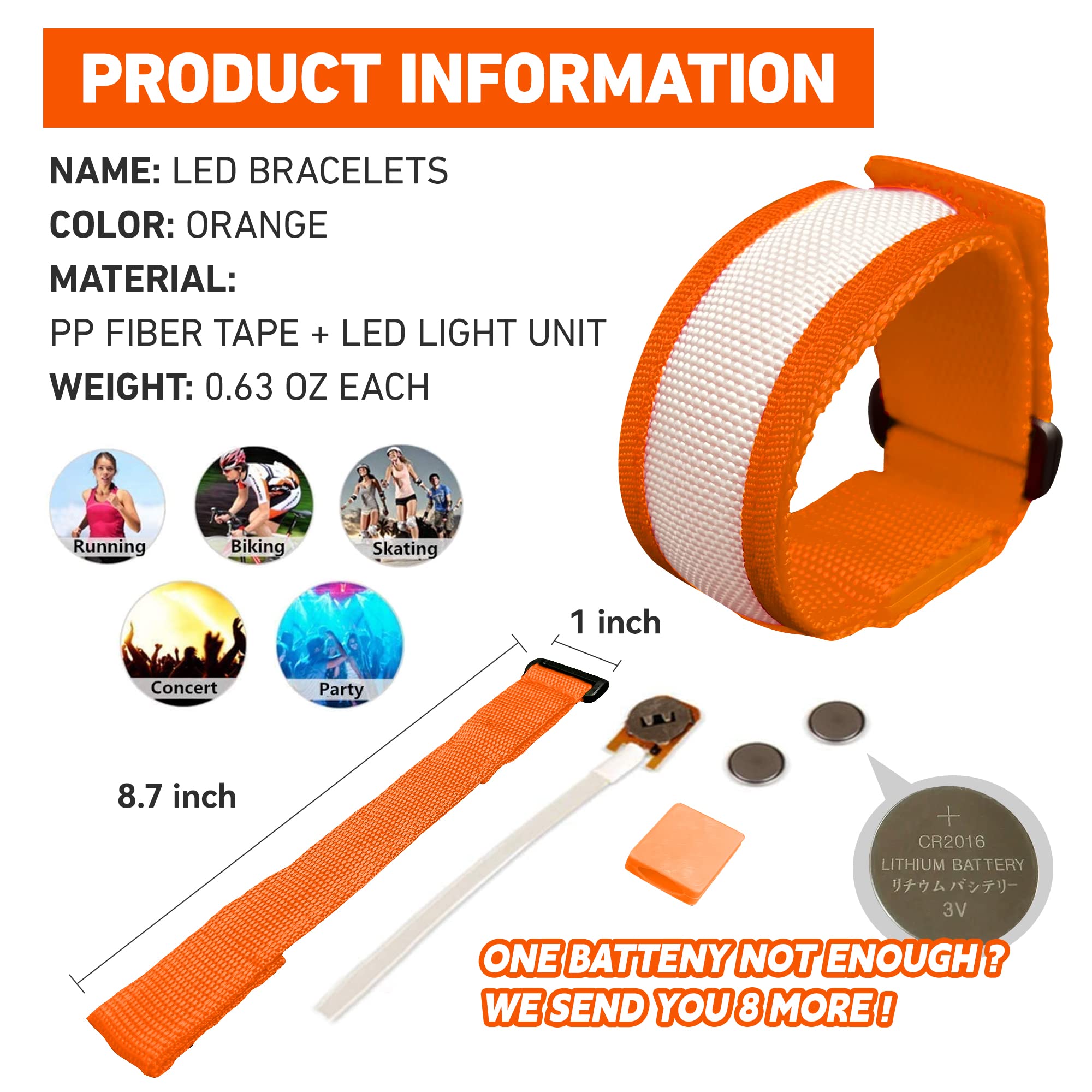 【Super value pack】: 8 Pack LED Wristbands come with batteries in it. Plus 8 extra batteries as gift. Ensuring long hours of fun.