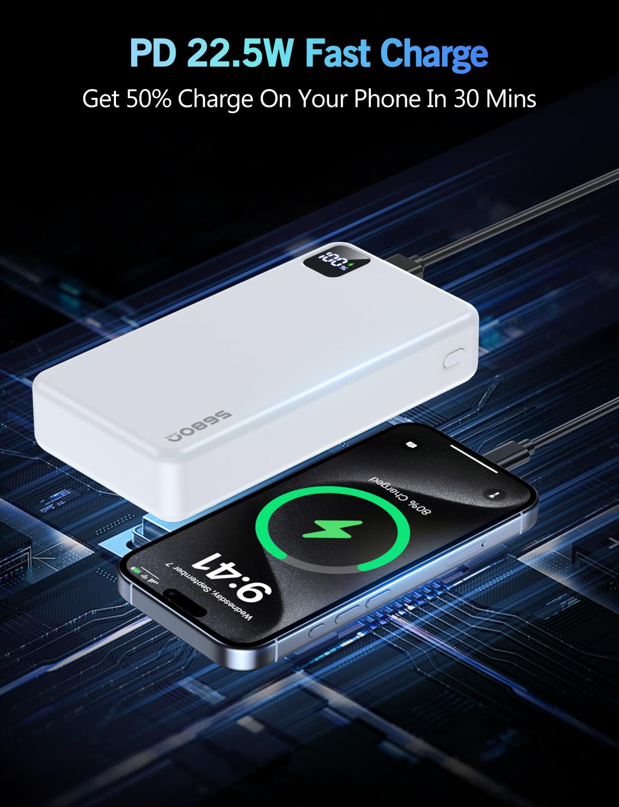 22.5W PD Fast Charging β Time-Saving Performance: With upgraded 22.5W fast charging technology, your devices get powered up quickly and efficiently. Whether topping up your phone before heading out or charging multiple devices on the go, the advanced output shortens waiting time while maintaining stable and safe performance. A reliable solution for heavy users who value speed and convenience.
