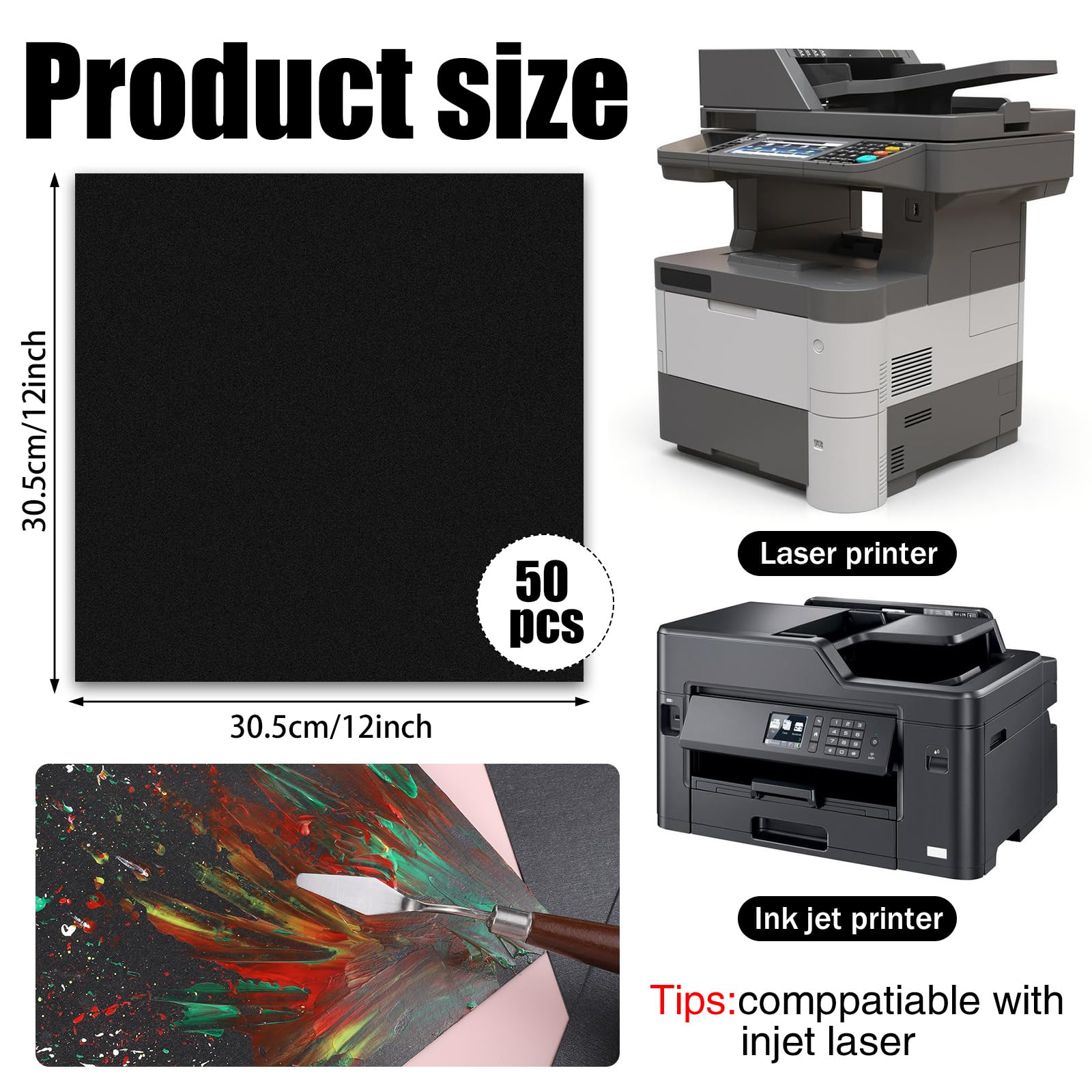【Printable】Our black cardstock paper is made of professional printing paper, which can make your printed patterns present the most perfect. It is suitable for most types of printers on the market. Before printing, please check that your printer can handle the size and weight of our black card stock, please change the ink color to white or another color.
