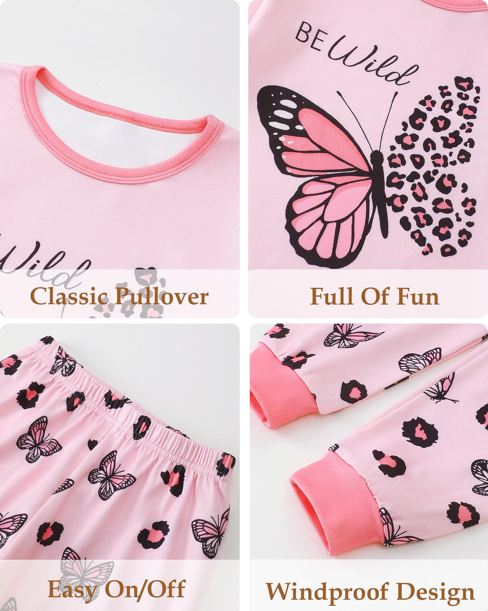 2-Piece Pajamas Set: This outfit includes long-sleeve tops and matching pants, printed with cute unicorn and cat patterns. The round-neck top and elastic-waist pants let kids move freely while keeping them comfy all night