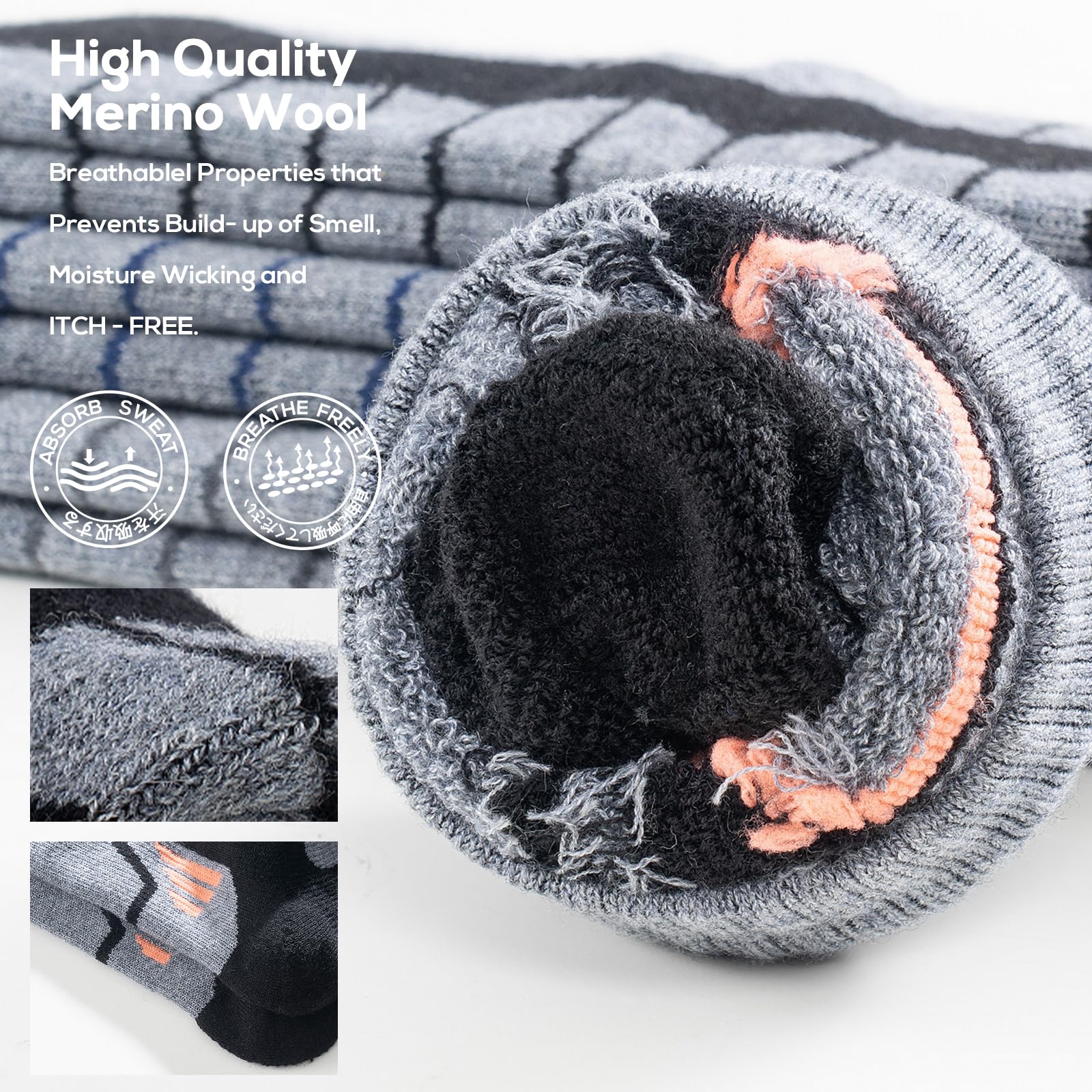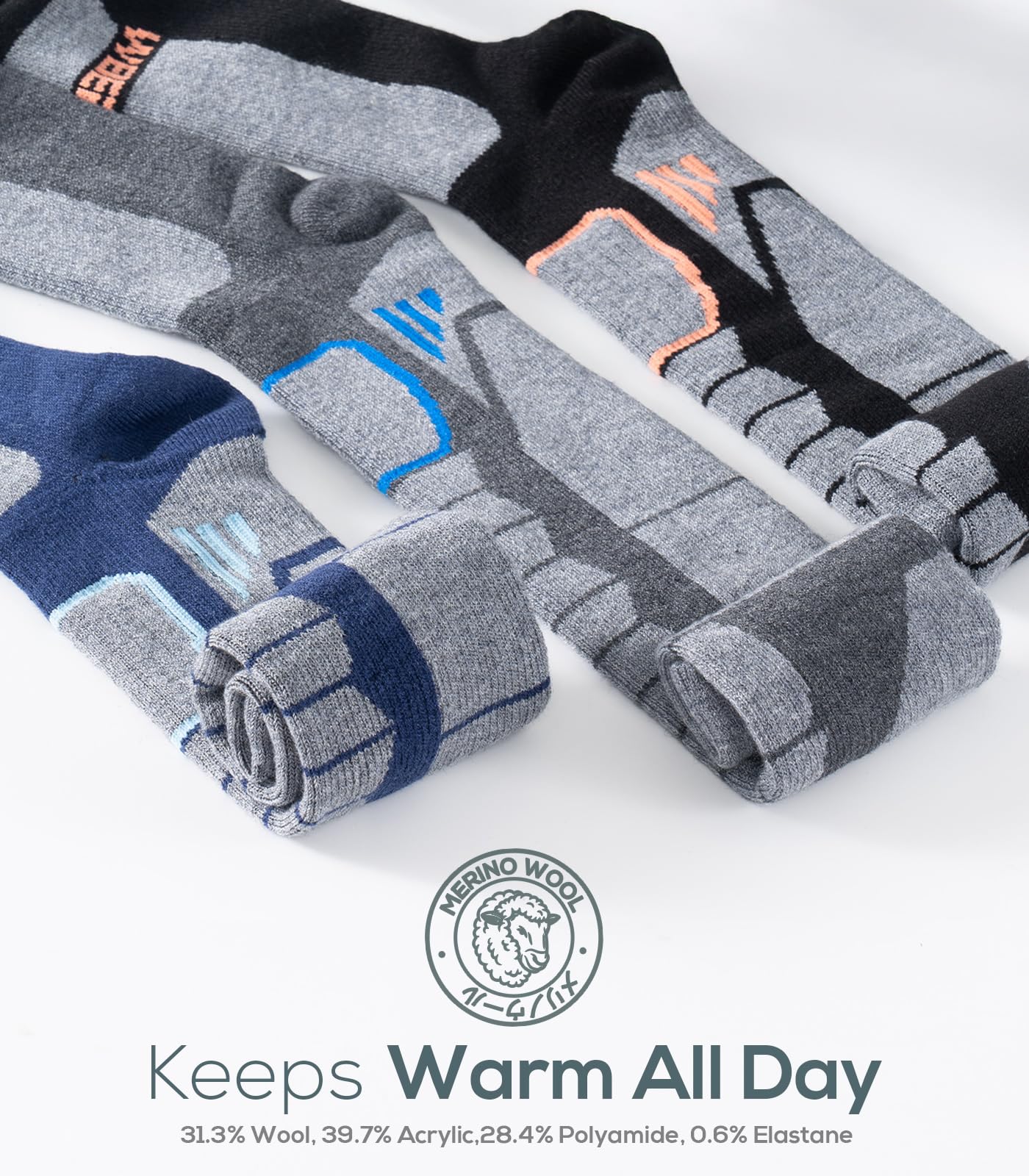 Premium Merino Wool Blend for Superior Warmth: 31.3% Merino wool combined with acrylic and polyamide provides natural insulation and breathability, keeping feet warm and dry in sub-zero conditions without overheating – ideal for skiing, snowboarding, or winter hikes.