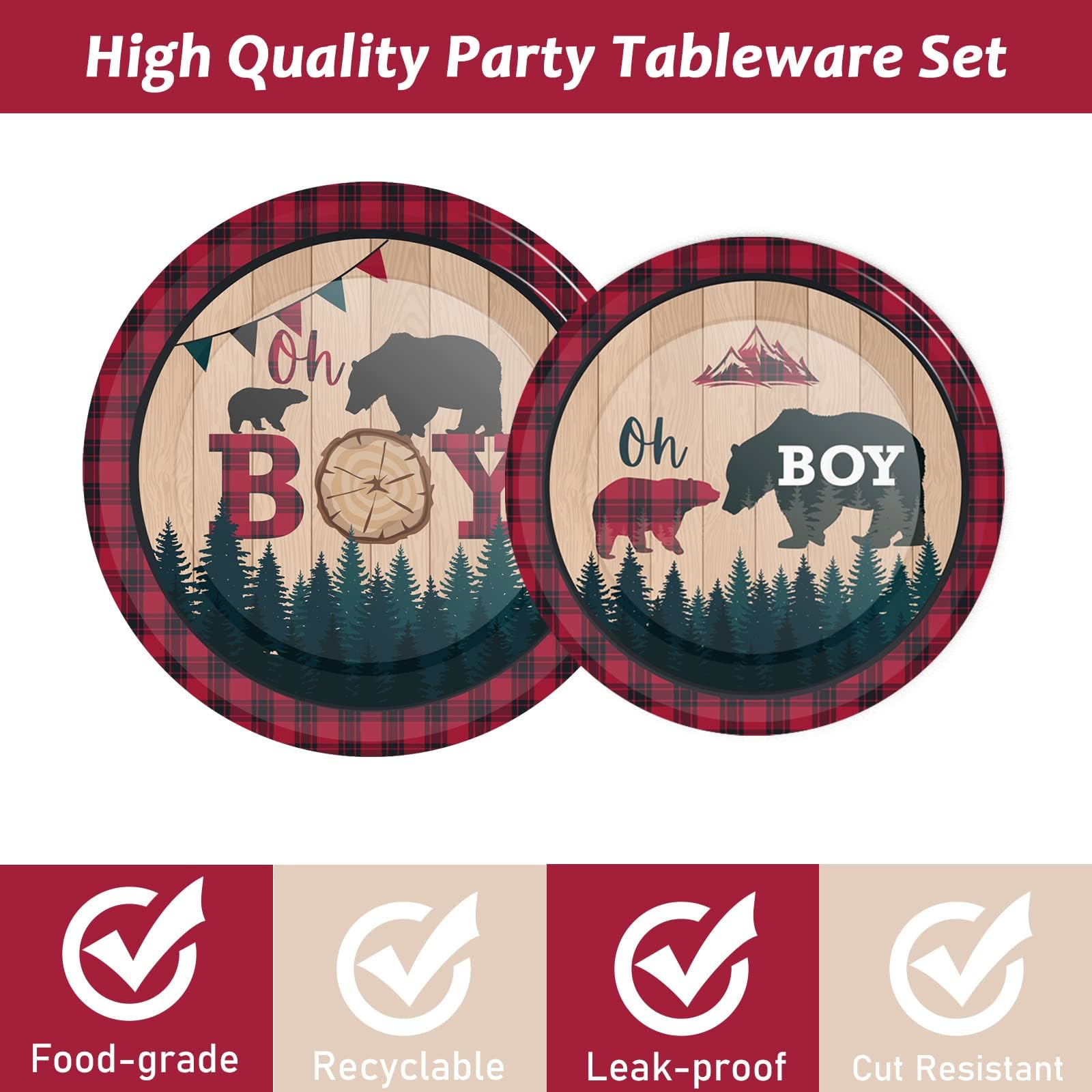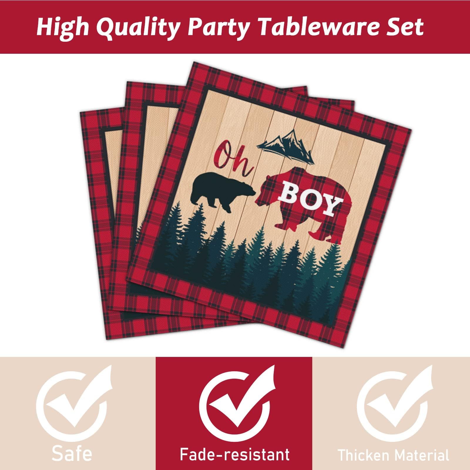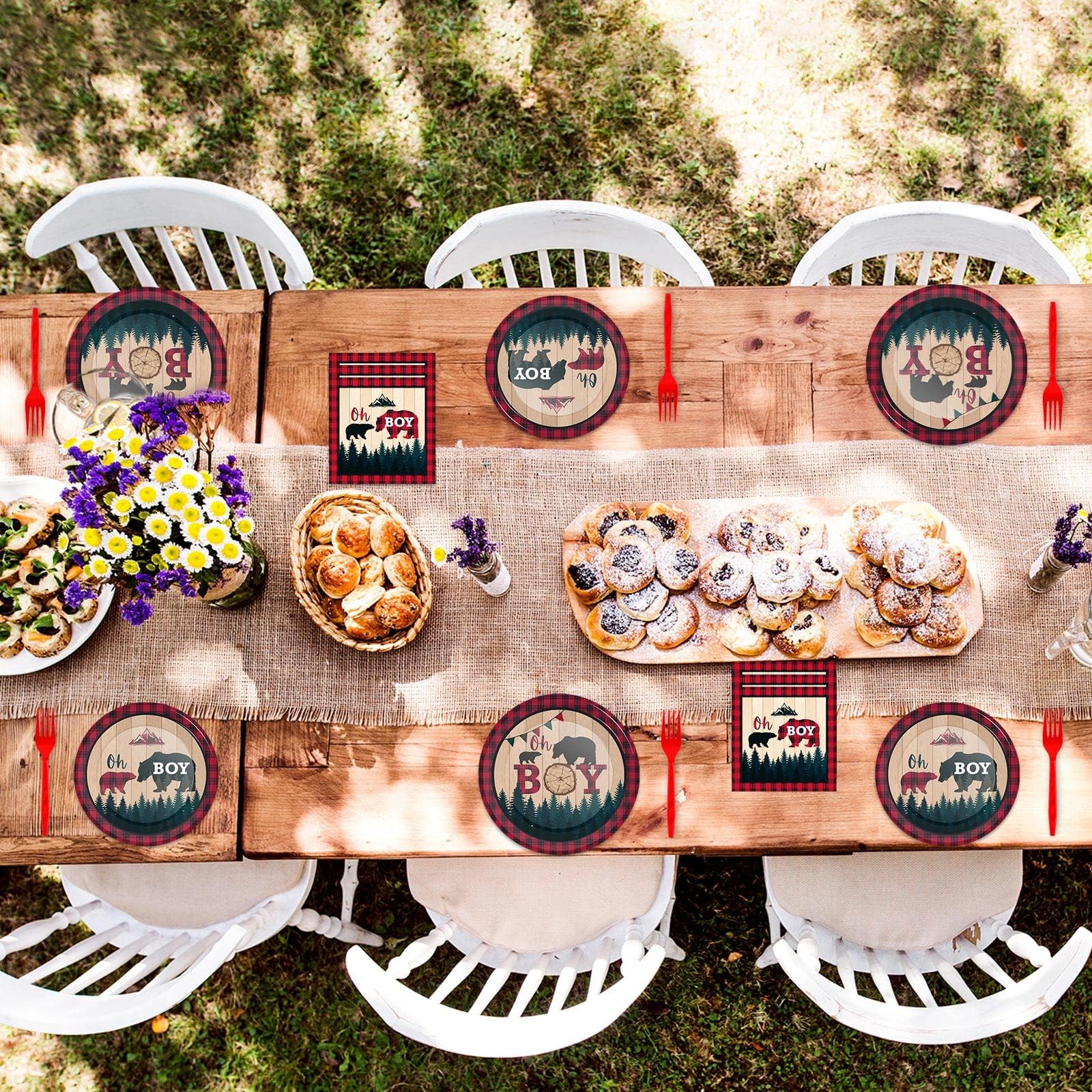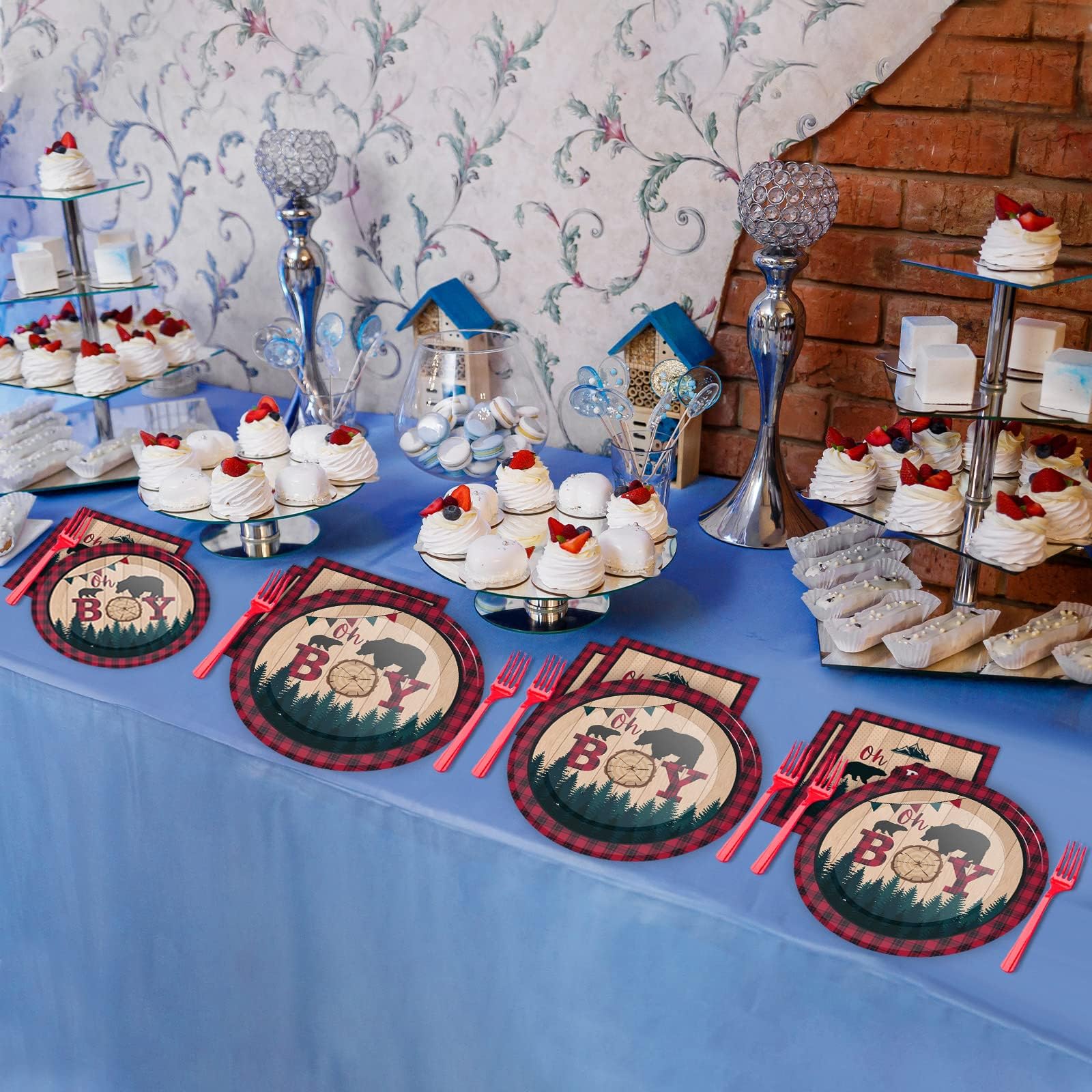 【Premium Material】All of our lumberjack plaid plates and napkins are made of quality paper, non-toxic, no smell, heat-resistant and durable. The pattern and color are well-printed and fade-resistant to provide you with a party that full of baby shower party atmosphere.