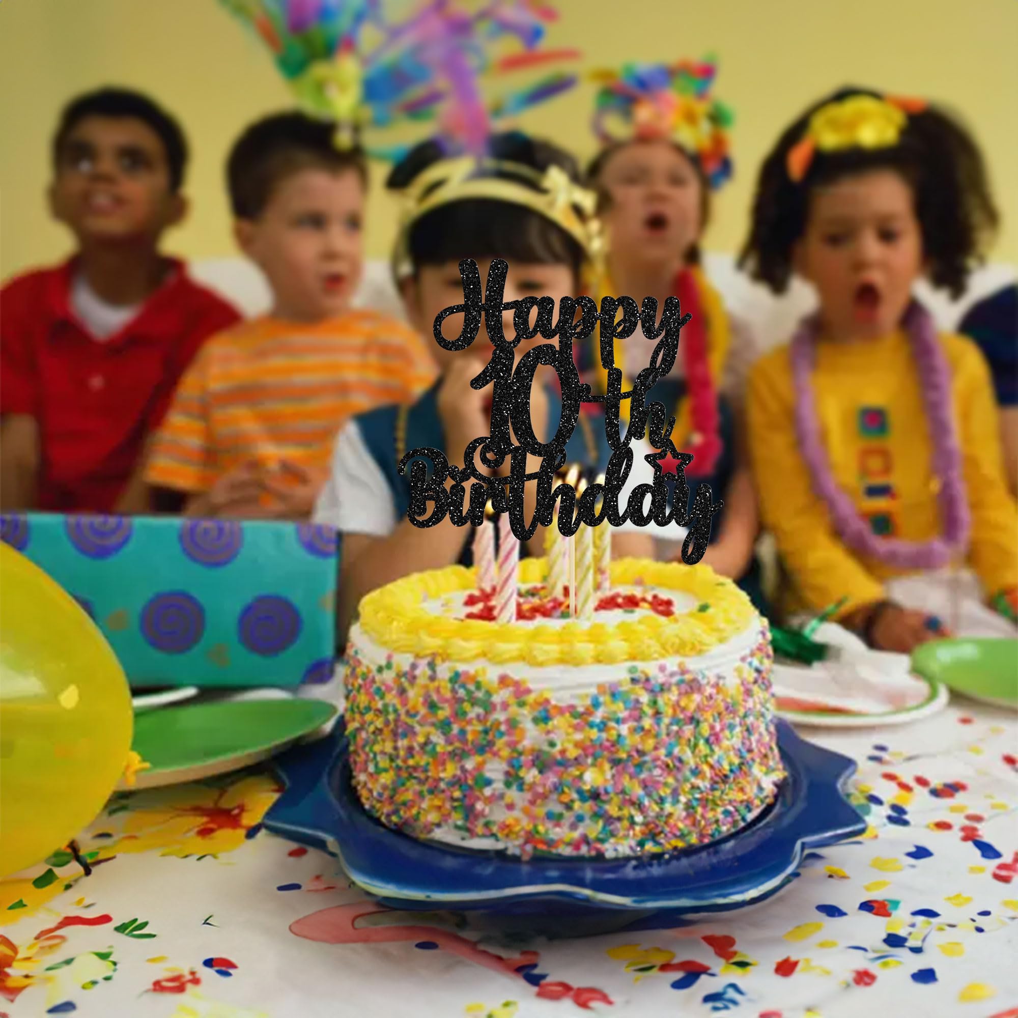 -Package included: 1Pcs Happy 10th Birthday Cake Topper. Comes with assembled, so you can insert into your cake directly, which make your cake more interesting.
