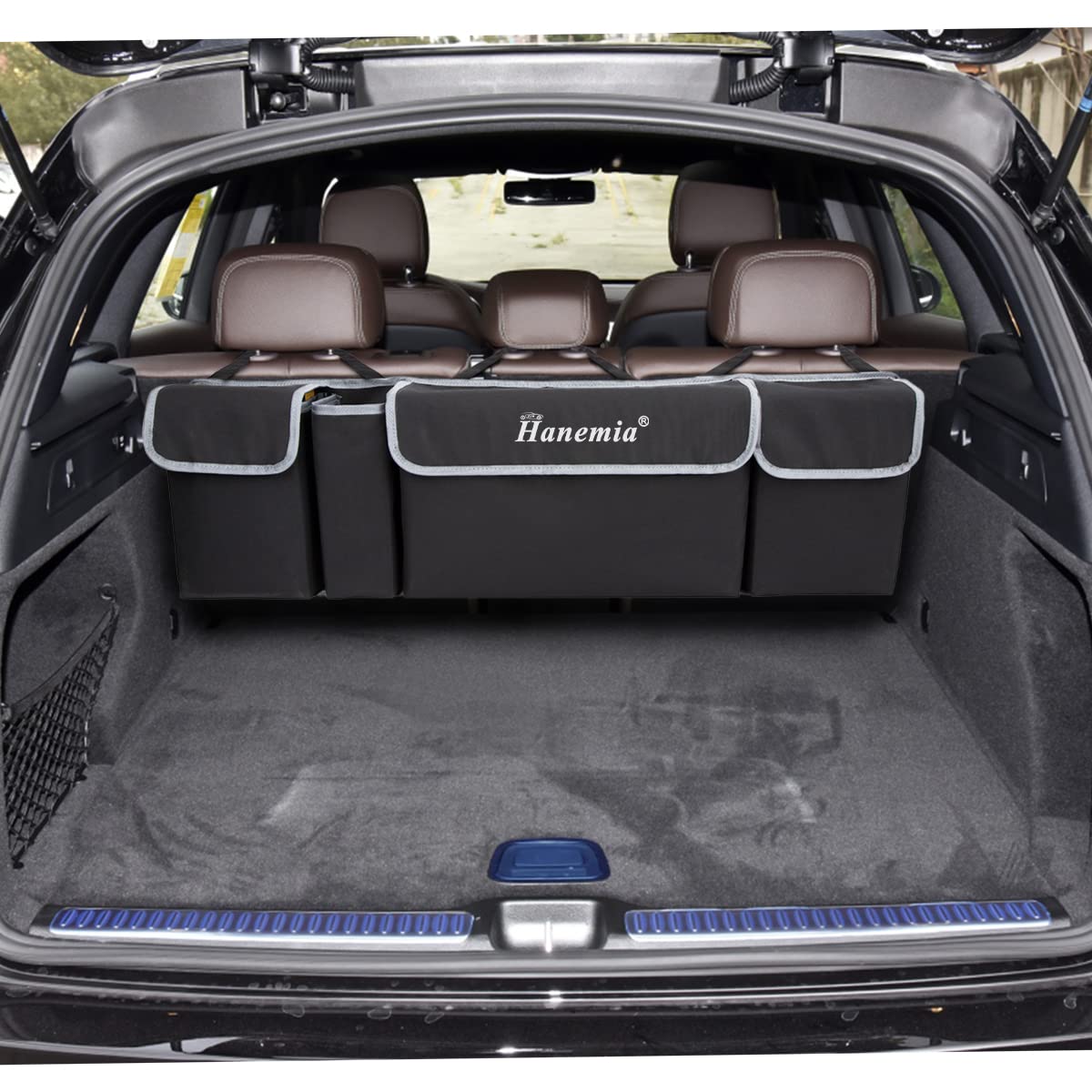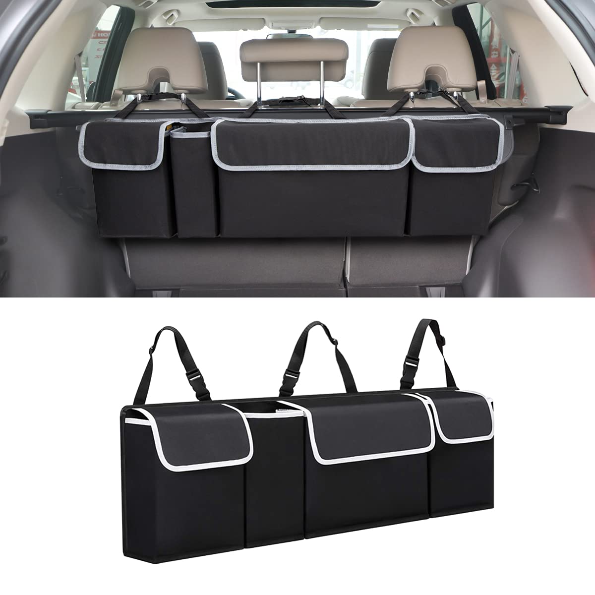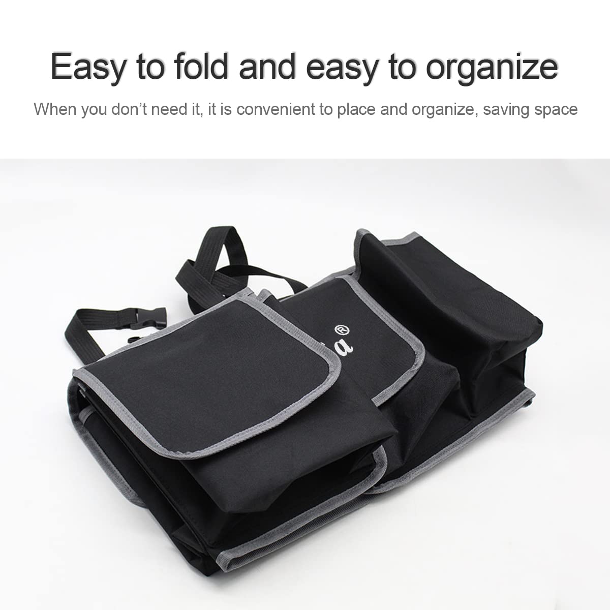 [A Must-have for Your Car] Our trunk organizer is made of premium 600D PVC fabric cloth, which is durable, stable and waterproof. There are 3 large pocket and a bottle holder with unique hanging design. Straps are strong, you don't need to worry about organizer falling down due to the heavy item. Like road traveling? This is an essentials on the road trip. Put anything you need in the organizer and you can find them easier and quicker.A great addition to your car trunk.