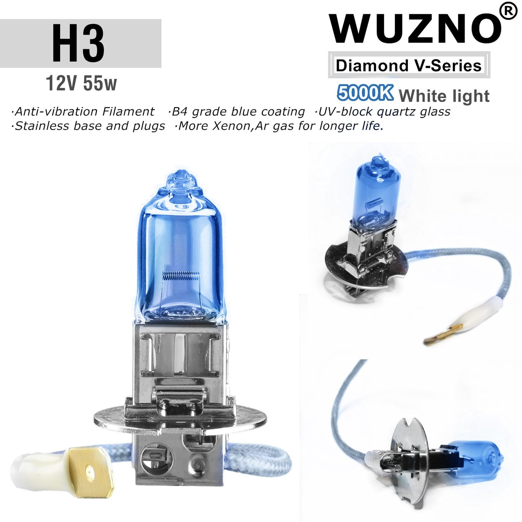 Whiter light: These bulbs are coated with a special blue layer which make the light whiter up to 5000k, like sunlight=less vision fatigue&better penetration