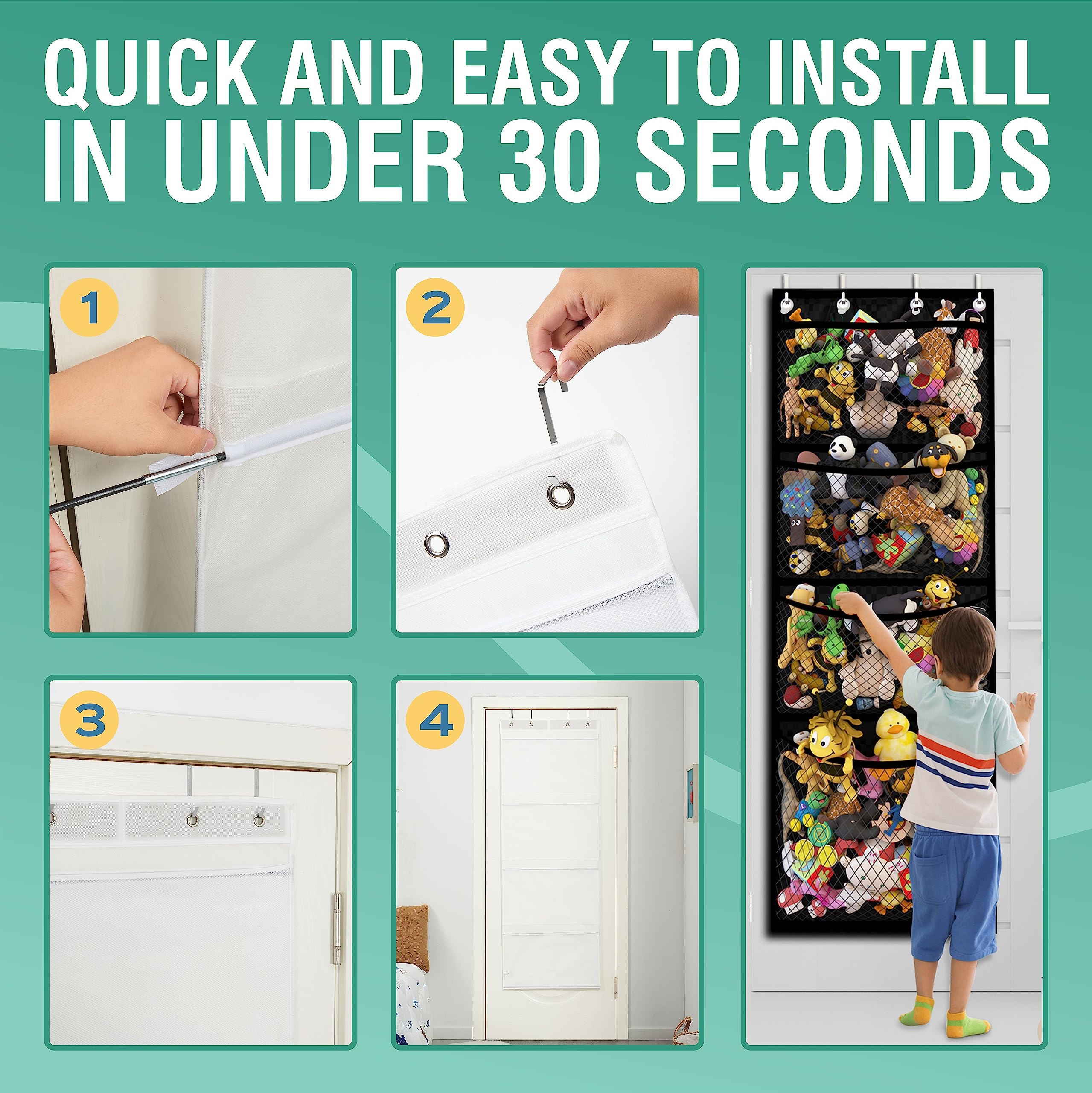 🧸 BUYER SATISFACTION GUARANTEE - While typical ideas for displaying stuffed animals take up valuable shelf and floor space and keep stuffies out of sight or out of reach, this unique door storage alternative to bean bag storage, a toy hammock, or multiple baskets for stuffed animals comes with a full 30-day money-back guarantee