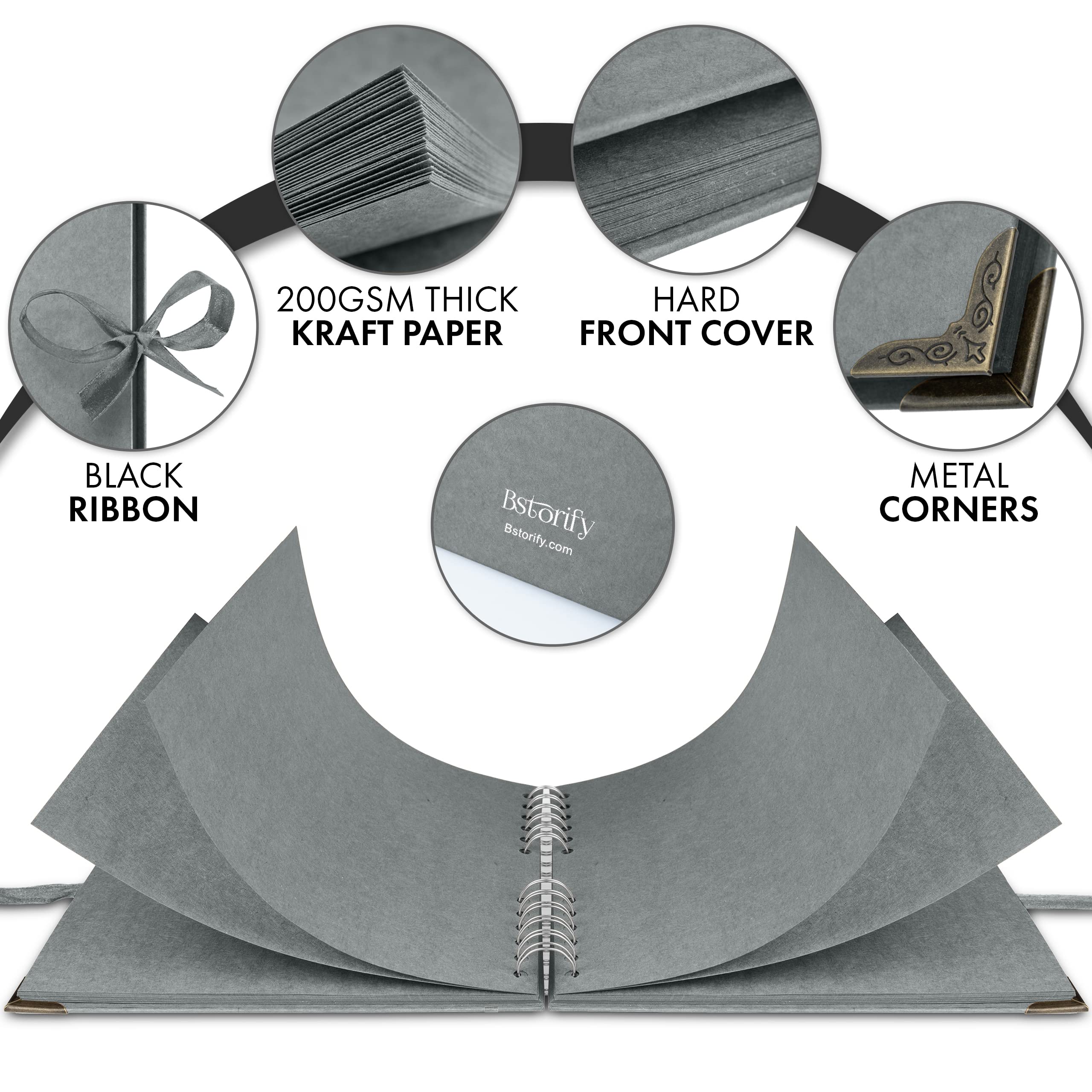 The spiral bound spine allows the scrap book to expand to fit in your photos, postcards, souvenirs. You can tie the ribbon into a bow or other style that you like and make your photo album scrapbook as individual as your memories and keep them endlessly
