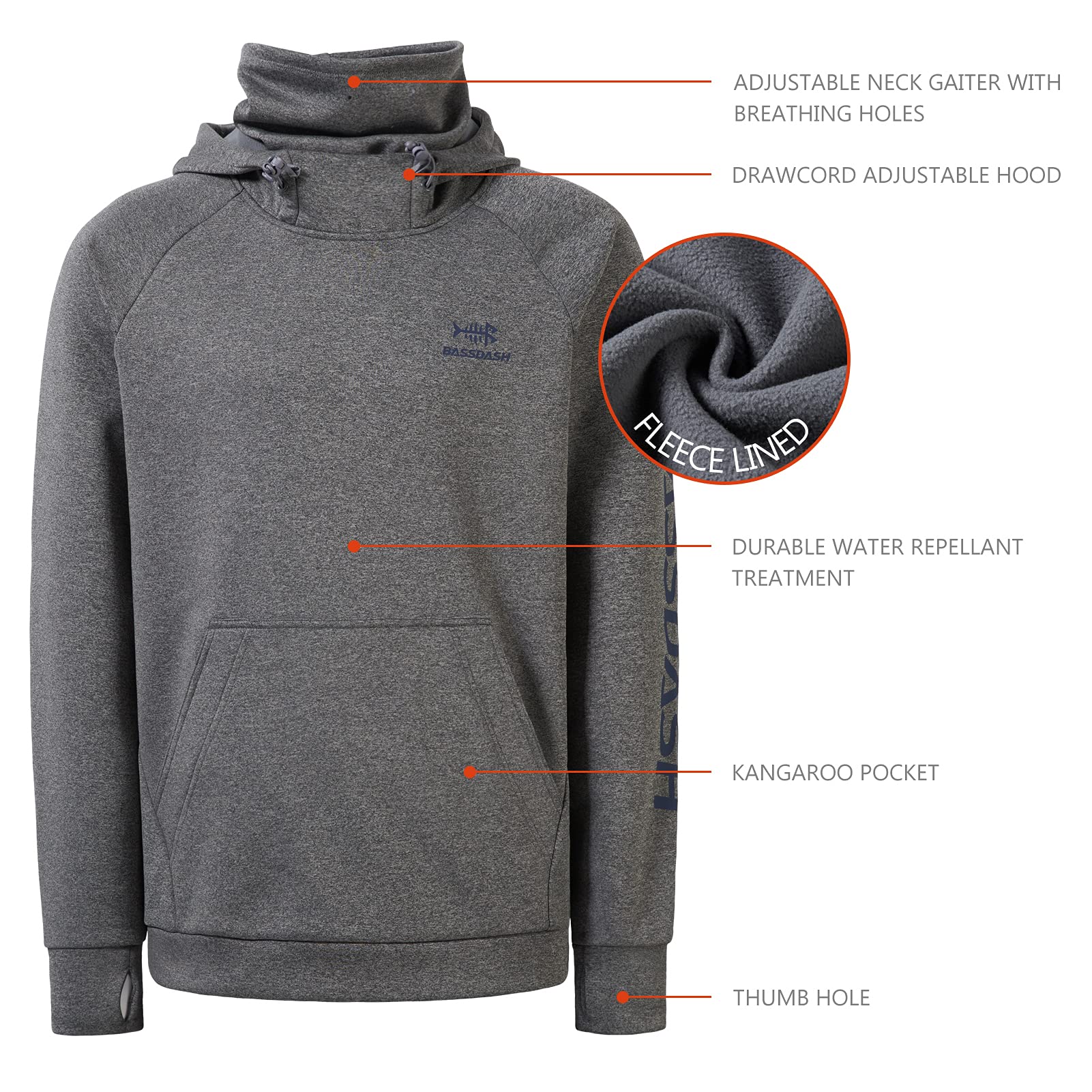 Water and stain resistant treatment makes dirt easier to clean as well as making the sweatshirt a nice gear for fishing on cool rainy days; Advanced pill-resistant and anti-static fabric with high-stitch density for durability; Stretchy elastic fabric for free movement; Soft fleeced lining provides extra warmth