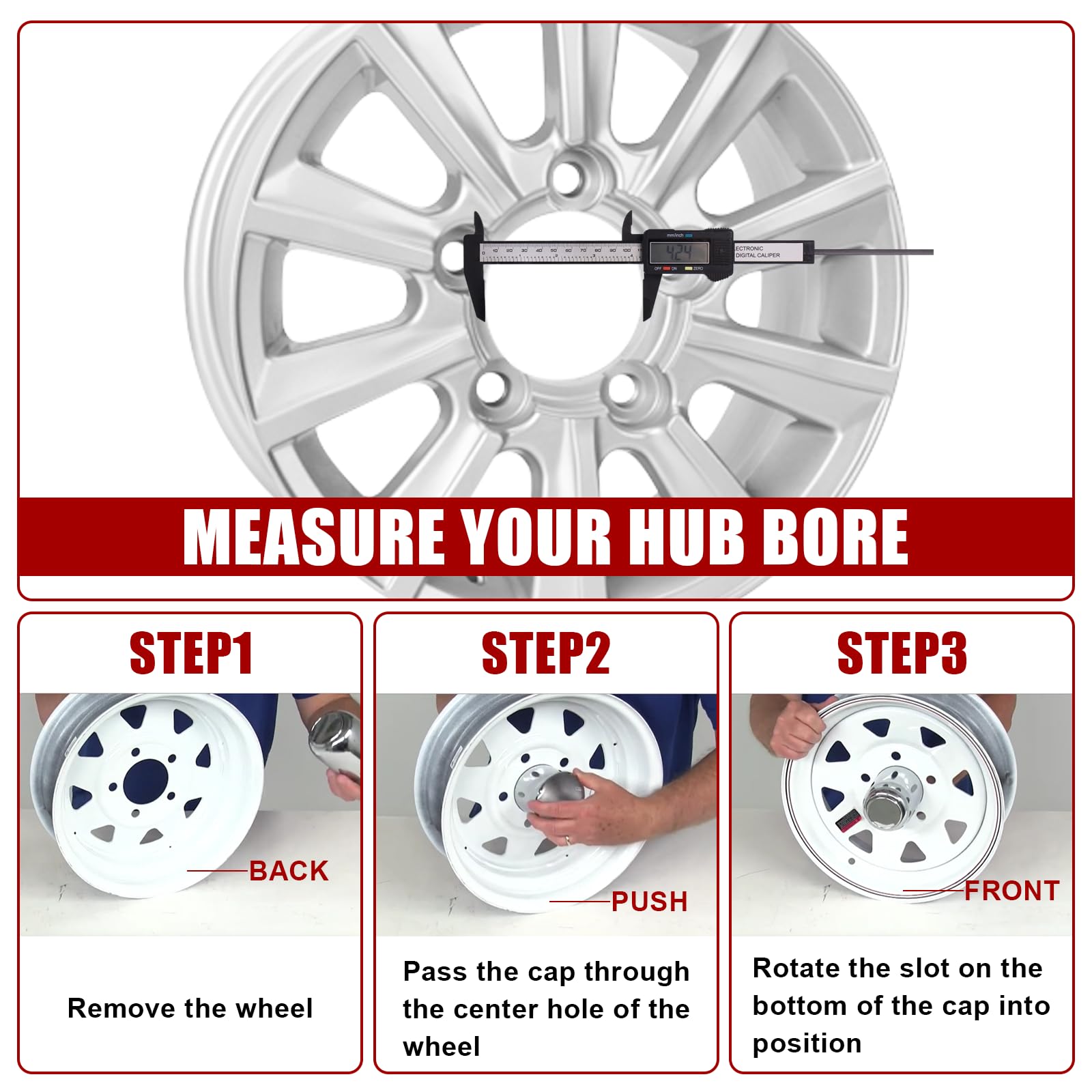 FOR 4.25” CENTER BORE: This chrome-plated push-thru center cap is designed specifically for 4.25” center bores. Ideal for trailer trucks, SUVs, or RV wheels. Use a digital caliper to check the center bore size before purchase to ensure proper fitment.