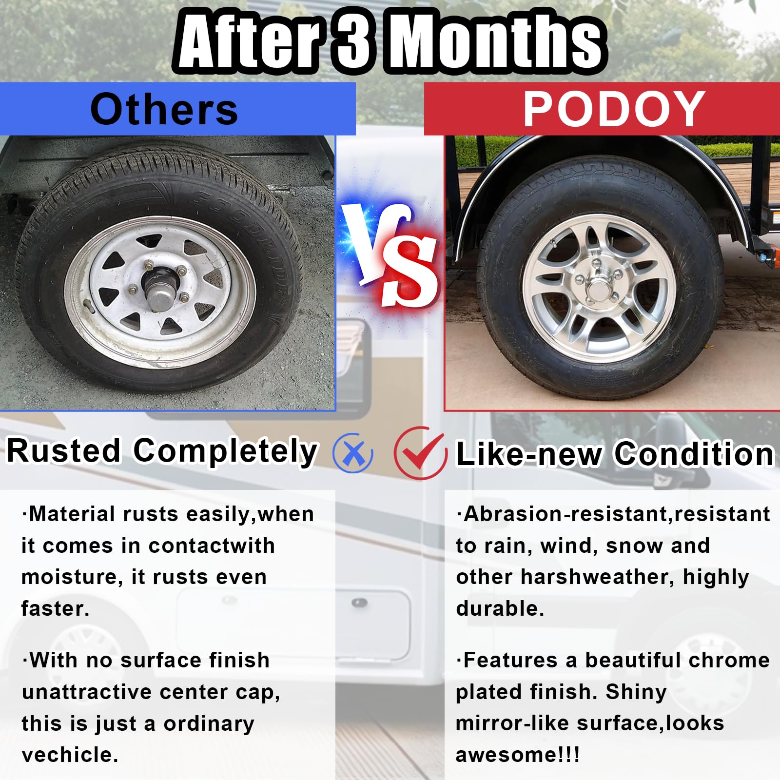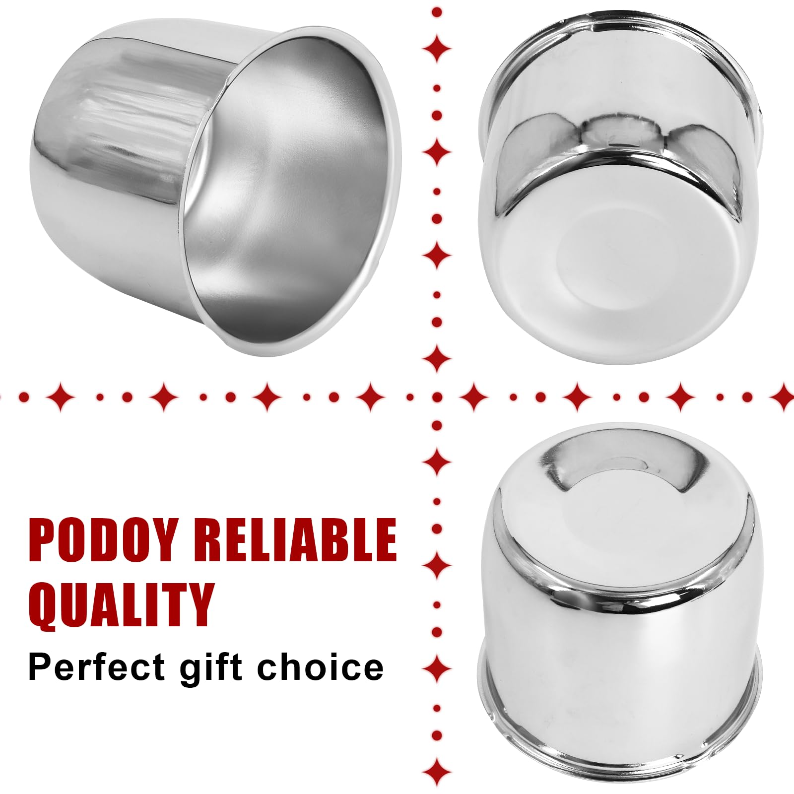 PREMIUM CENTER CAPS: Podoy push-through wheel center caps are made from high-quality carbon steel. They are scratch-resistant, solid, and durable, ensuring long-lasting performance. These caps are securely designed to stay in place and not easily fall off.