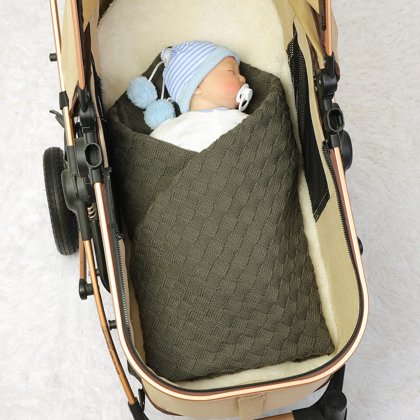 Timeless Cable Pattern & Colors: Delight in the beauty of the checker-pattern cable knit and the 11 delightful colors(light green, dark green, dusty blue, yellow, grey, pink, white, blue, brown, beige, and classic green), adding timeless elegance and childishness to this breathable baby blanket, match any nursery theme or personal style.