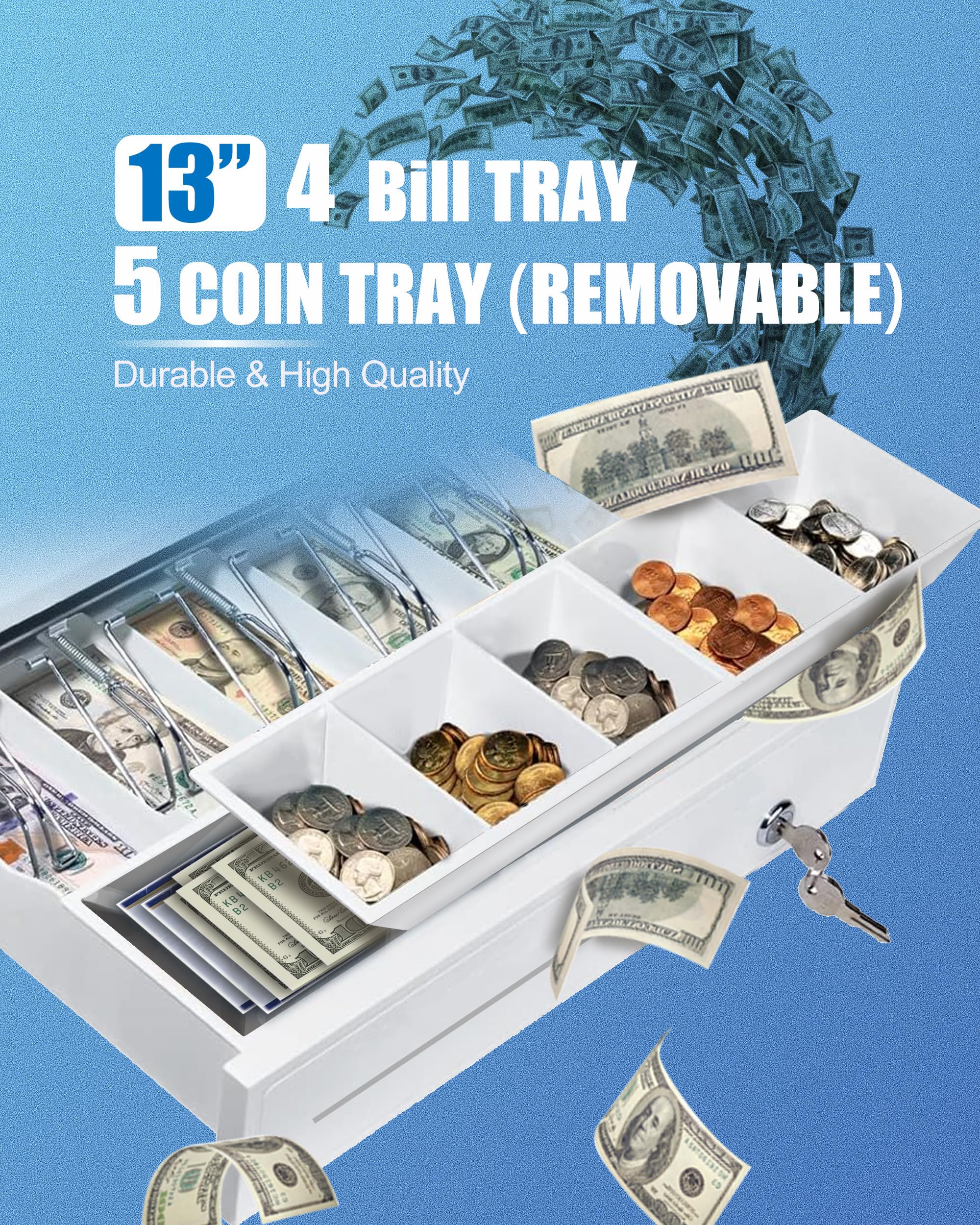 ๐ฅใ๐๐ฅ๐ฅ ๐๐ง ๐๐ง๐ Cash Registerใ: The Perfiware cash register offers a complete solution for small businesses, featuring a built-in receipt printer and a cash drawer with 4 bill slots and 5 coin compartments.