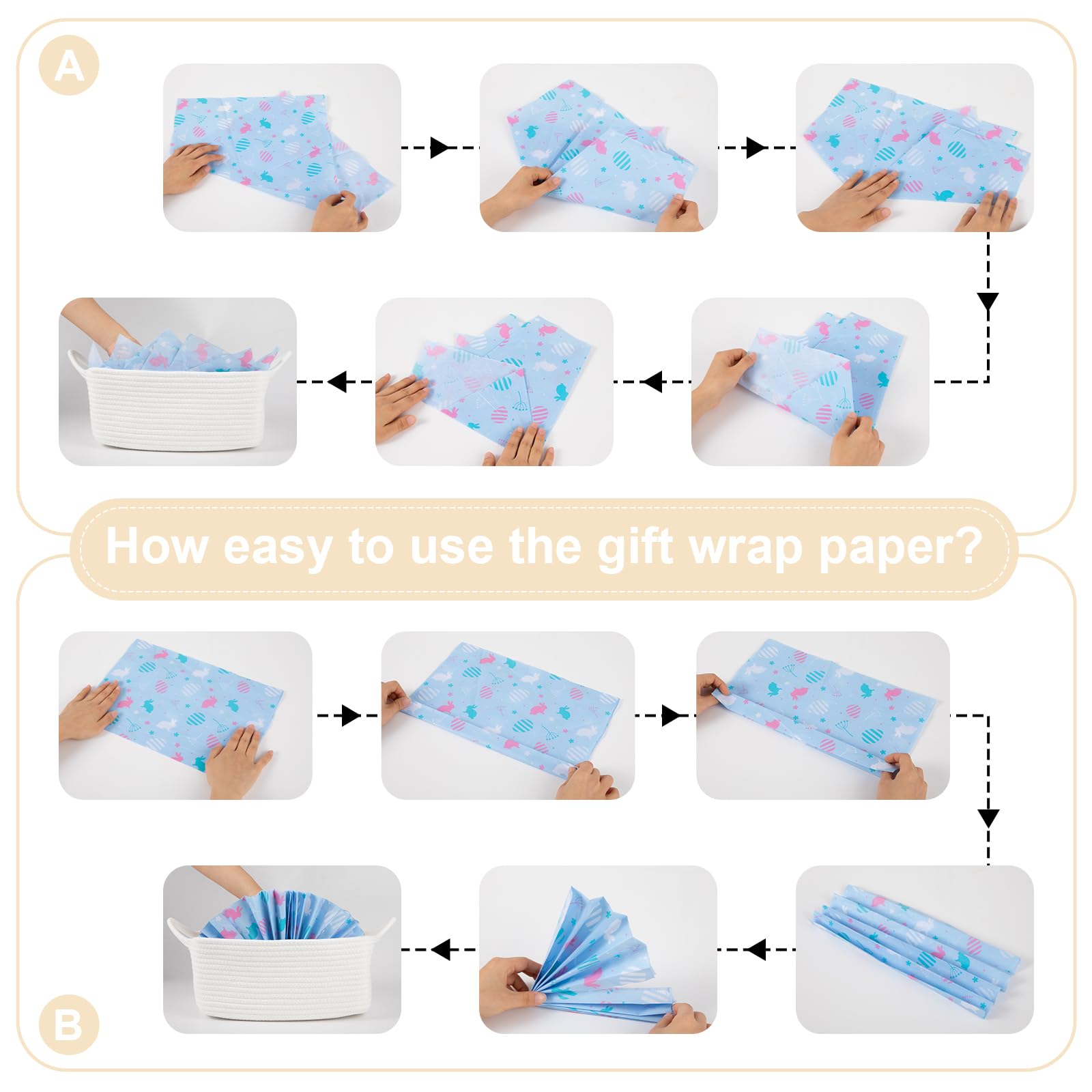 Convenient recovery process: The small baskets for gifts is folded when arriving. After receiving the basket, you can easily open it and place towels or clothes to regain its shape. If you have an iron at home, ironing can also help the cute storage basket recover to its best condition faster