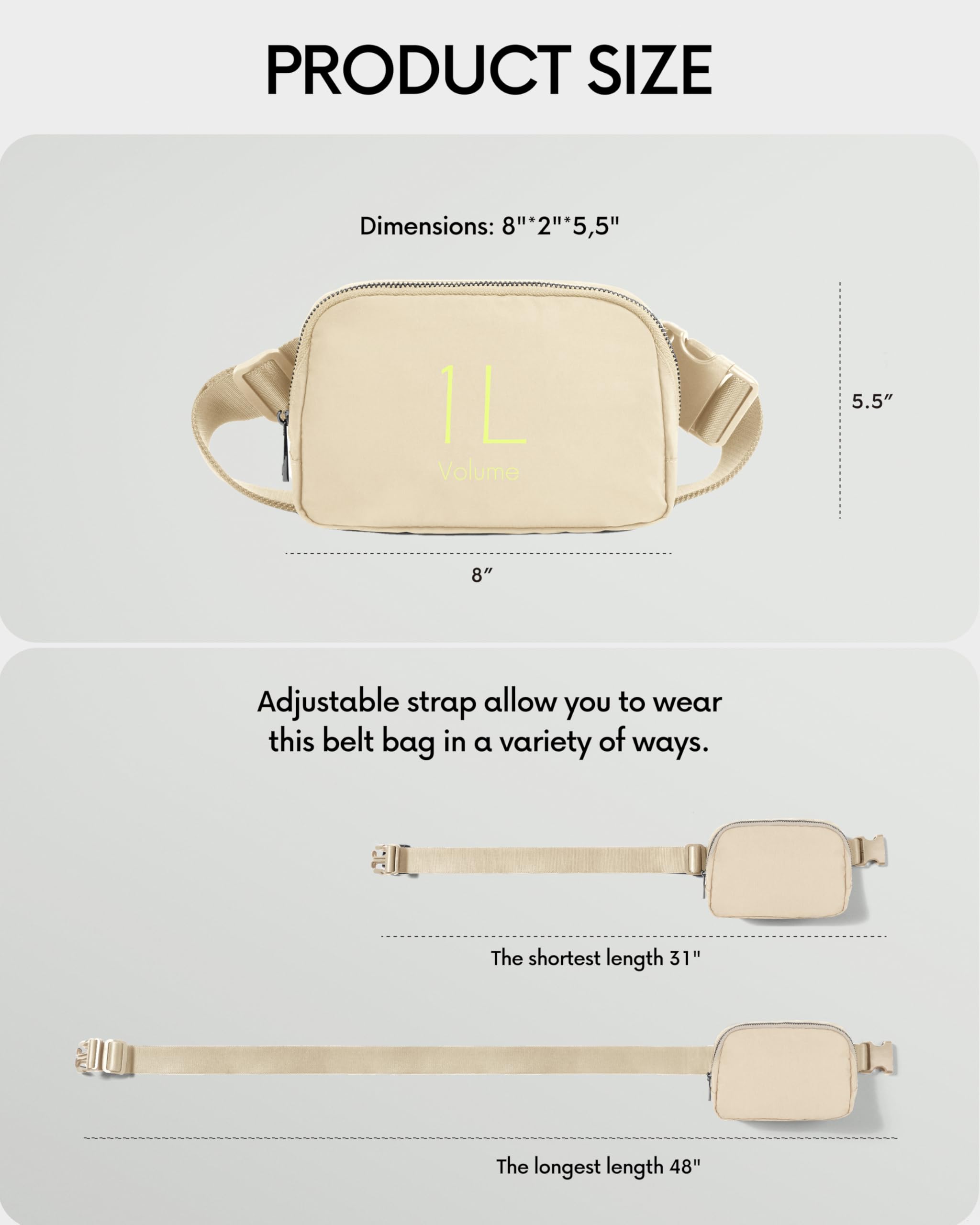 Versatile Style: Adjustable Strap allow you to wear this belt bag in a variety of ways. It can be carried as cross bag, shoulder bag, waist bag or handbag. It’s all up to you.