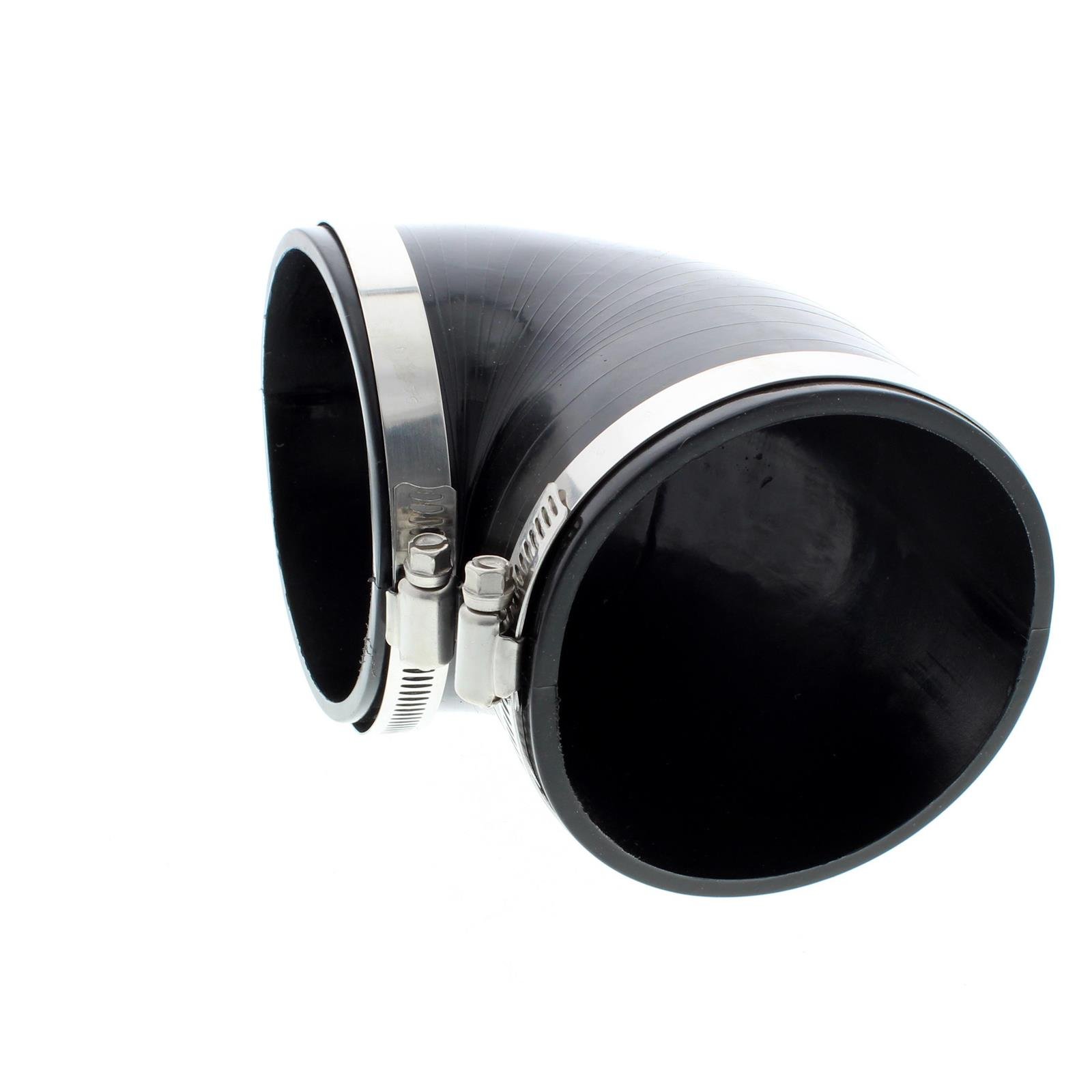 This Spectre Intake Coupler is a 4 inch to 4 inch 90 degree elbow. It comes with two stainless steel worm gear hose clamps. Use it to connect any 4 inch outside diameter component or air intake tube to a 4 inch outside diameter component or intake tube. The coupler is not recommended for turbo-charged/supercharged engines.